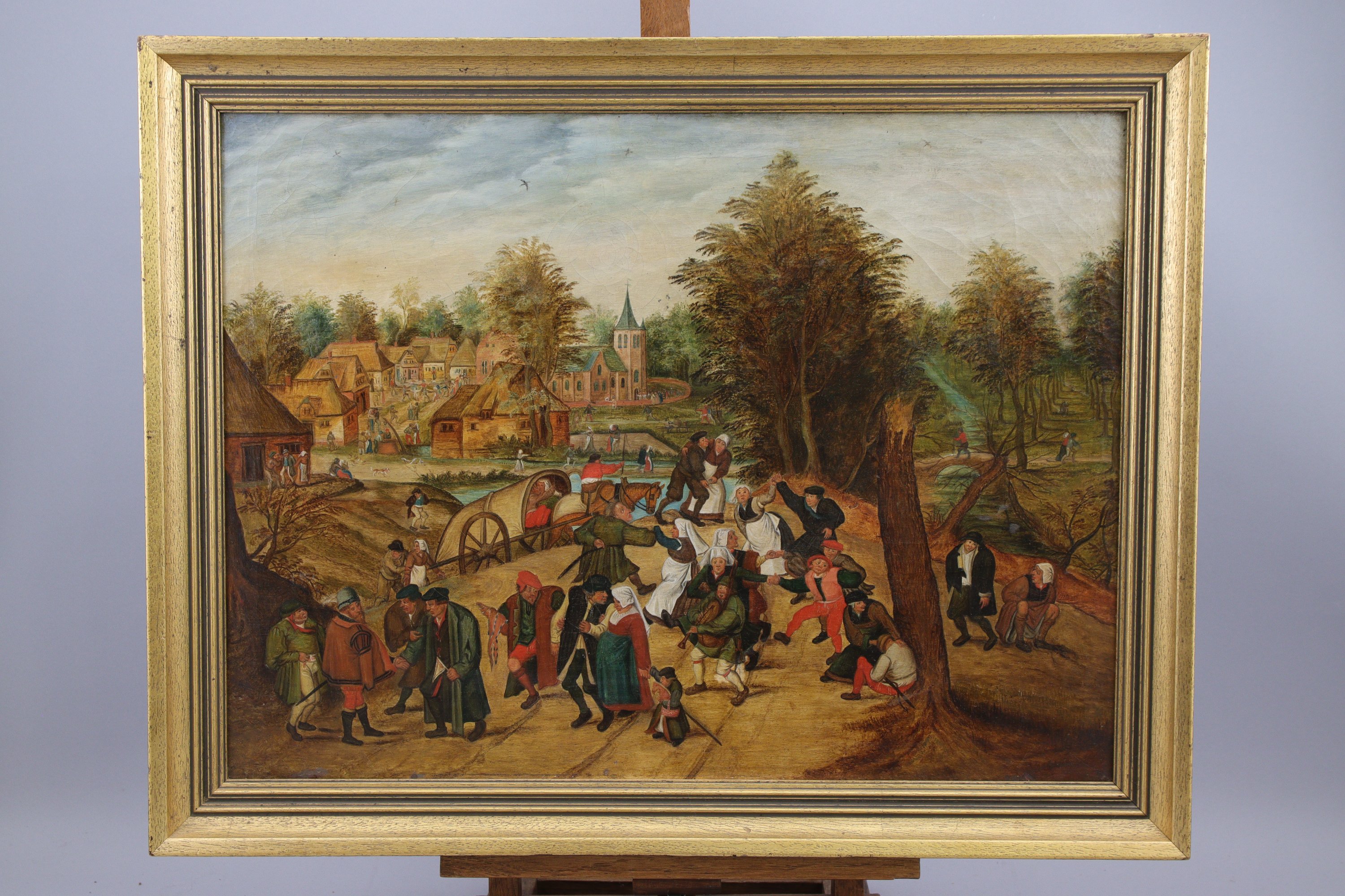 Copie ancienne du panneau "Le retour de la kermesse" réalisé par Pieter Brueghel le Jeune (Flamand, c. 1564-1636) vers 1620 et conservé aujourd'hui au Nivaagaards Malerisamling de Nivå au Danemark sous le numéro 0011NMK.