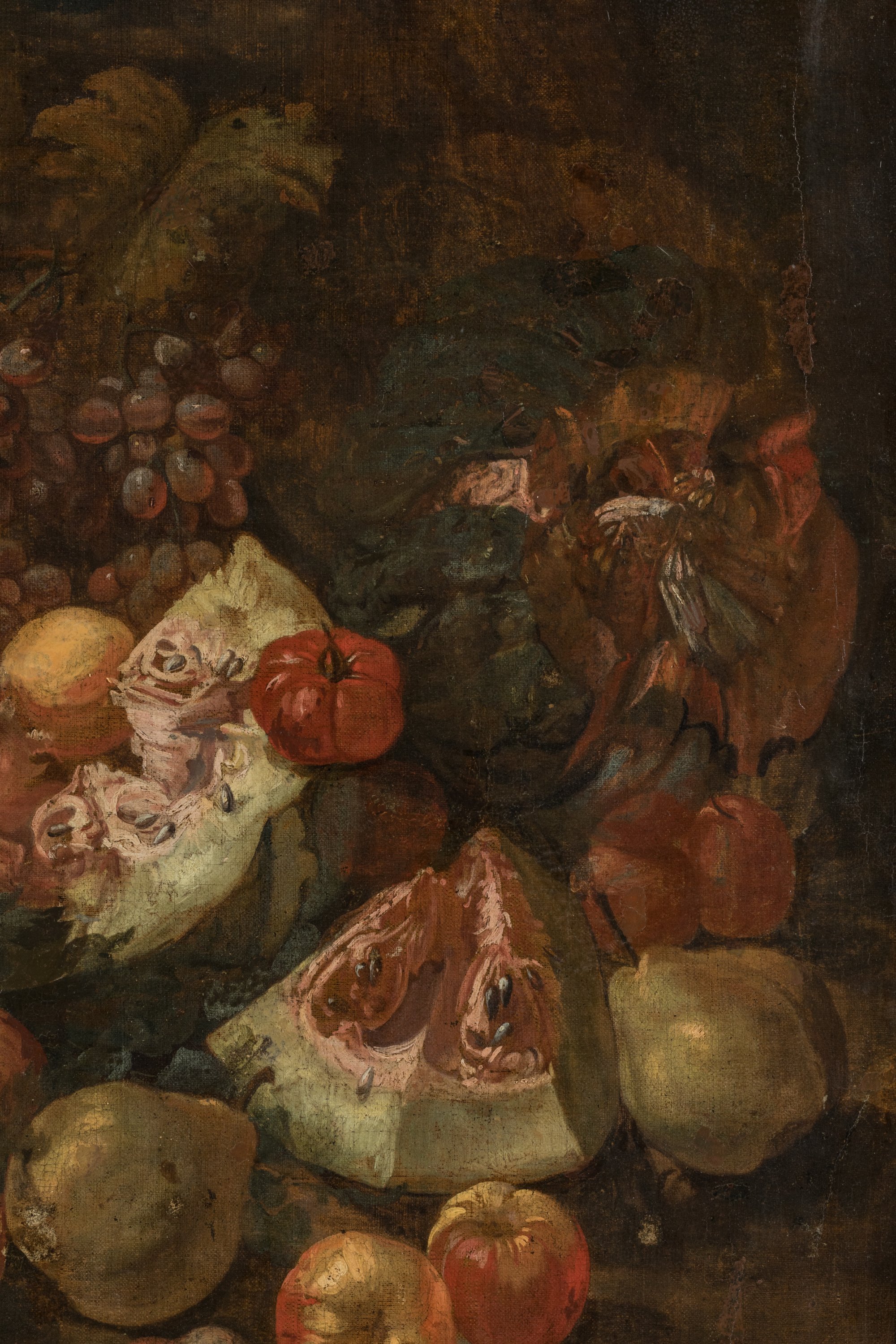 Attributed to Peter van Boucle. A still life painting with fruit and vegetables.