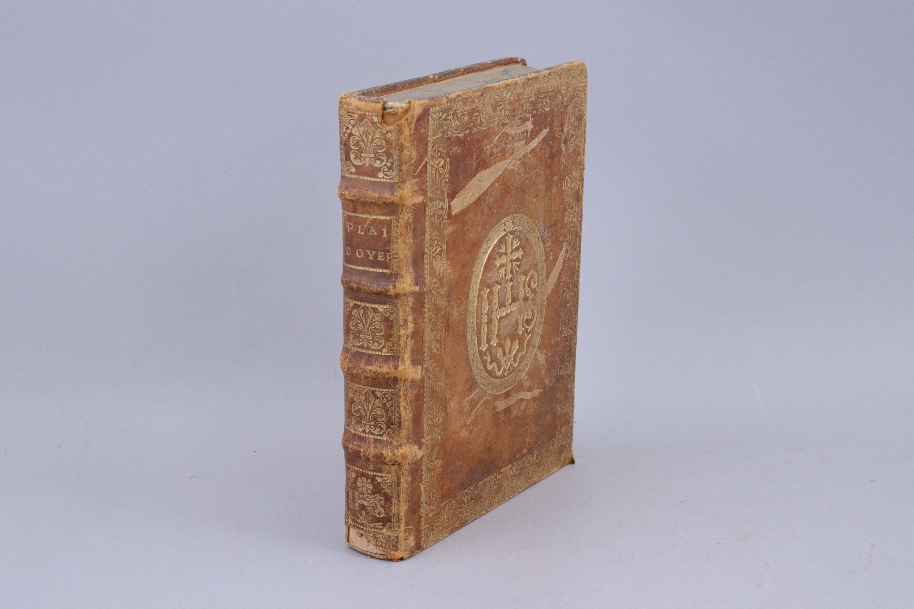 Reliure ornée du grand blason des Jésuites. (Sur: Plaidoyers et Oeuvres diverses de Monsieur Patru, de l'Académie Françoise. Nouvelle édition).