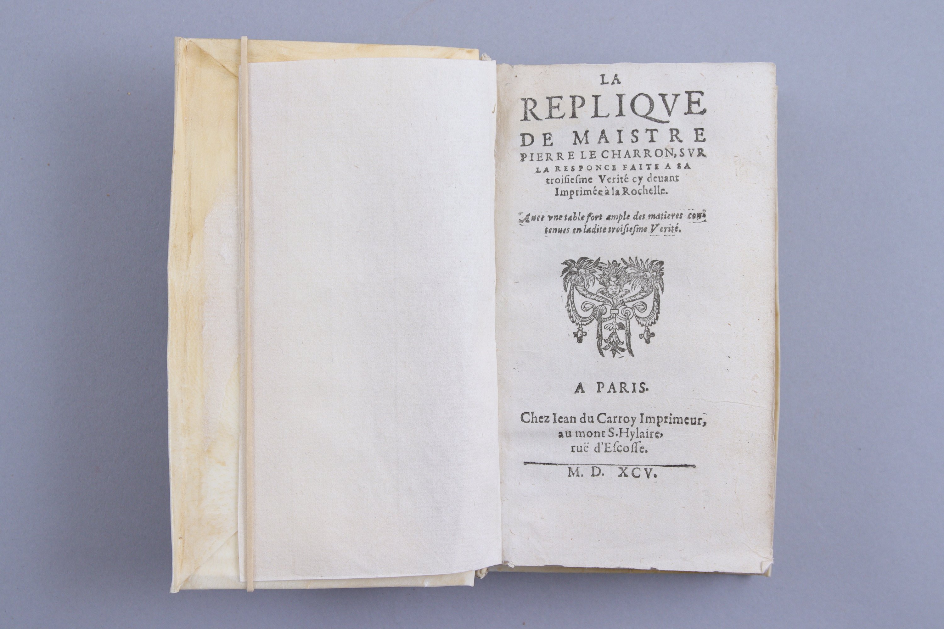 La première édition des "Trois Véritez contre les Athées, Idolâtres, Iuifs, Mahométans, hérétiques et schismatiques" est publiée à Bordeaux en 1593 chez Millanges, l'éditeur de Montaigne. Cette édition de la Réplique, chez Jean du Carroy, datée 1595 est inconnue de Tchemerzine qui n'en cite aucune d'antérieure.