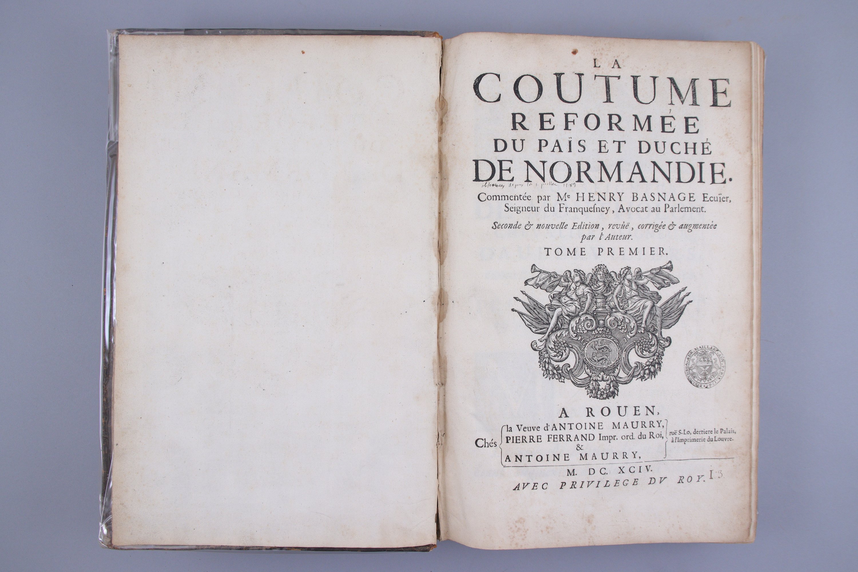 Rouen, Veuve d'Antoine Maurry et Pierre Ferrand. 1694
