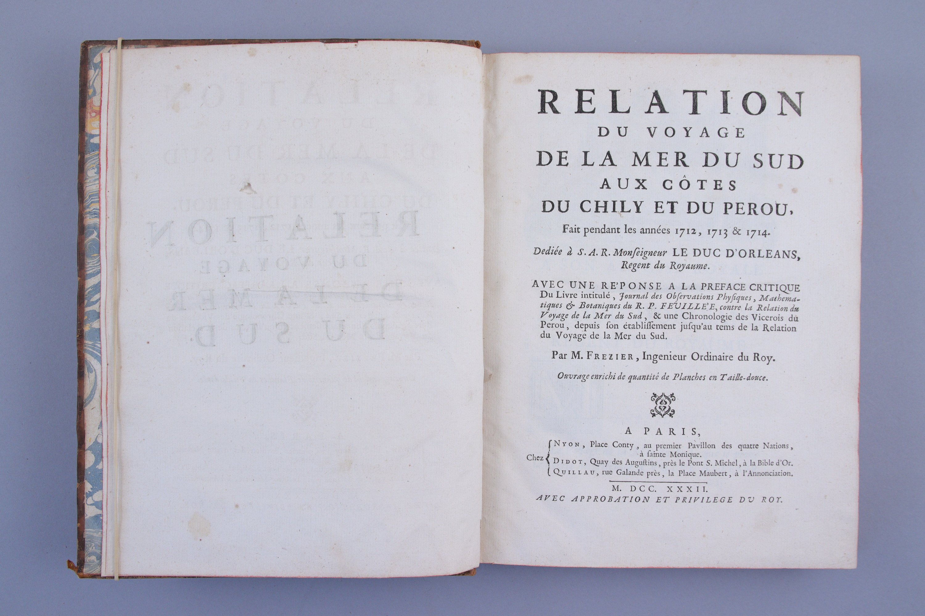 Relation du voyage de la Mer du Sud, aux côtes du Chily et du Pérou, fait pendant les années 1712, 1713 & 1714 ... avec une réponse à la préface critique du livre intitulé Journal des observations physiques, mathématiques, et botaniques du R.P. Feuillée, contre la Relation du Voyage de la Mer du Sud, & une chronologie des Vicerois du Pérou..
