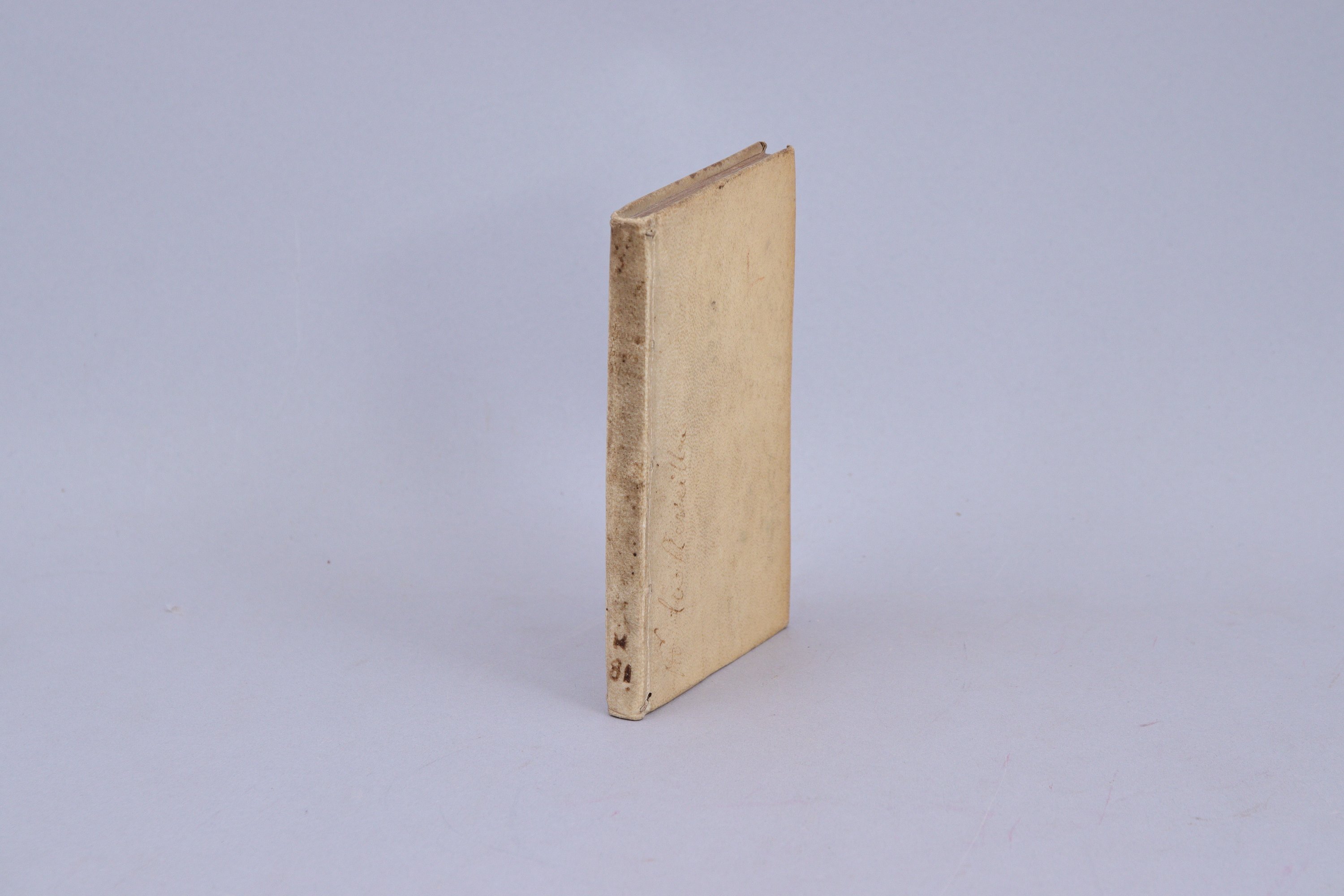 Petit in-12, 126 pages et (1 f.). Vélin rigide du temps..