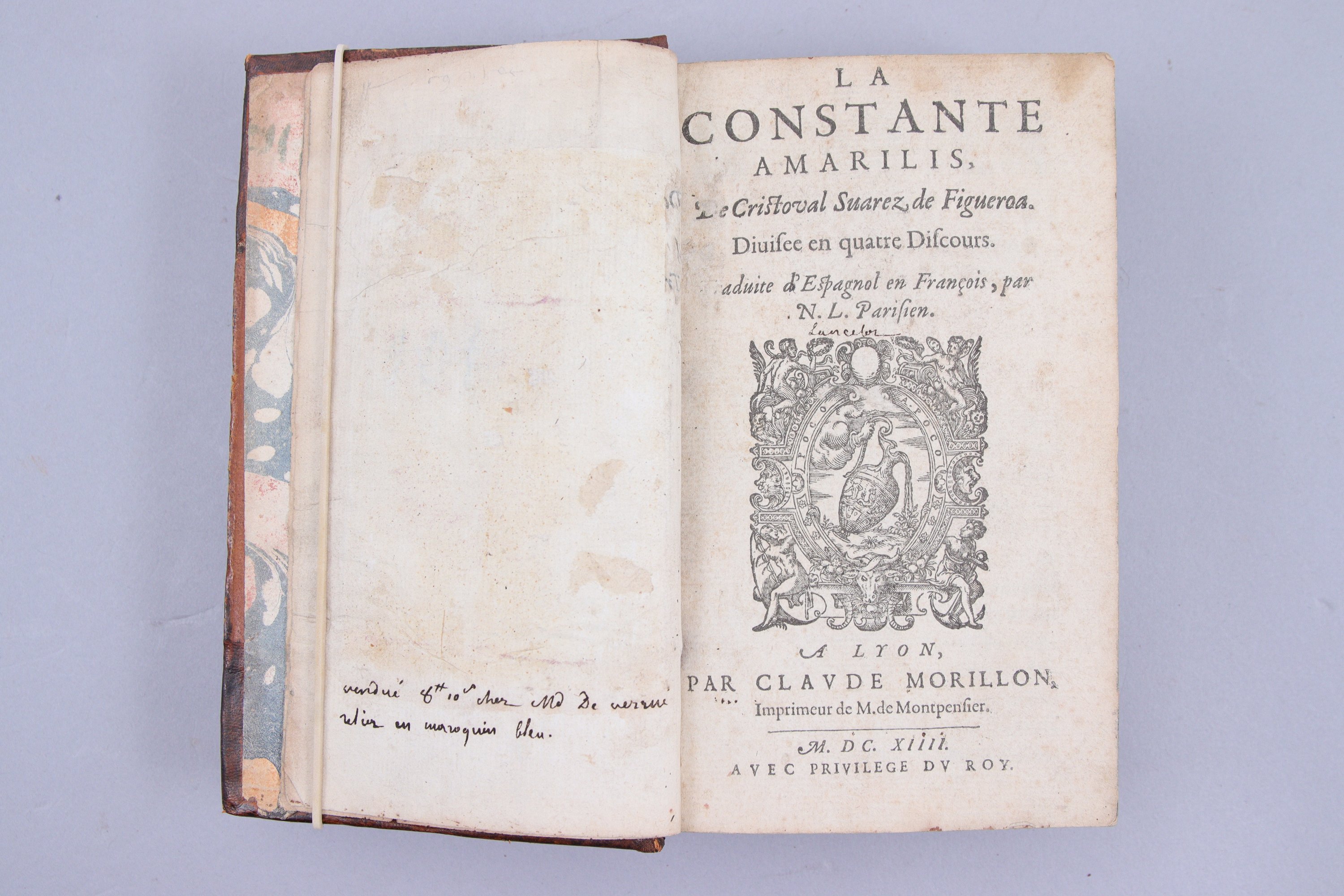 La Constante Amarilis de Cristoval Suarez de Figueroa. Divisée en quatre discours. Traduite d'Espagnol en François par N.L. Parisien.