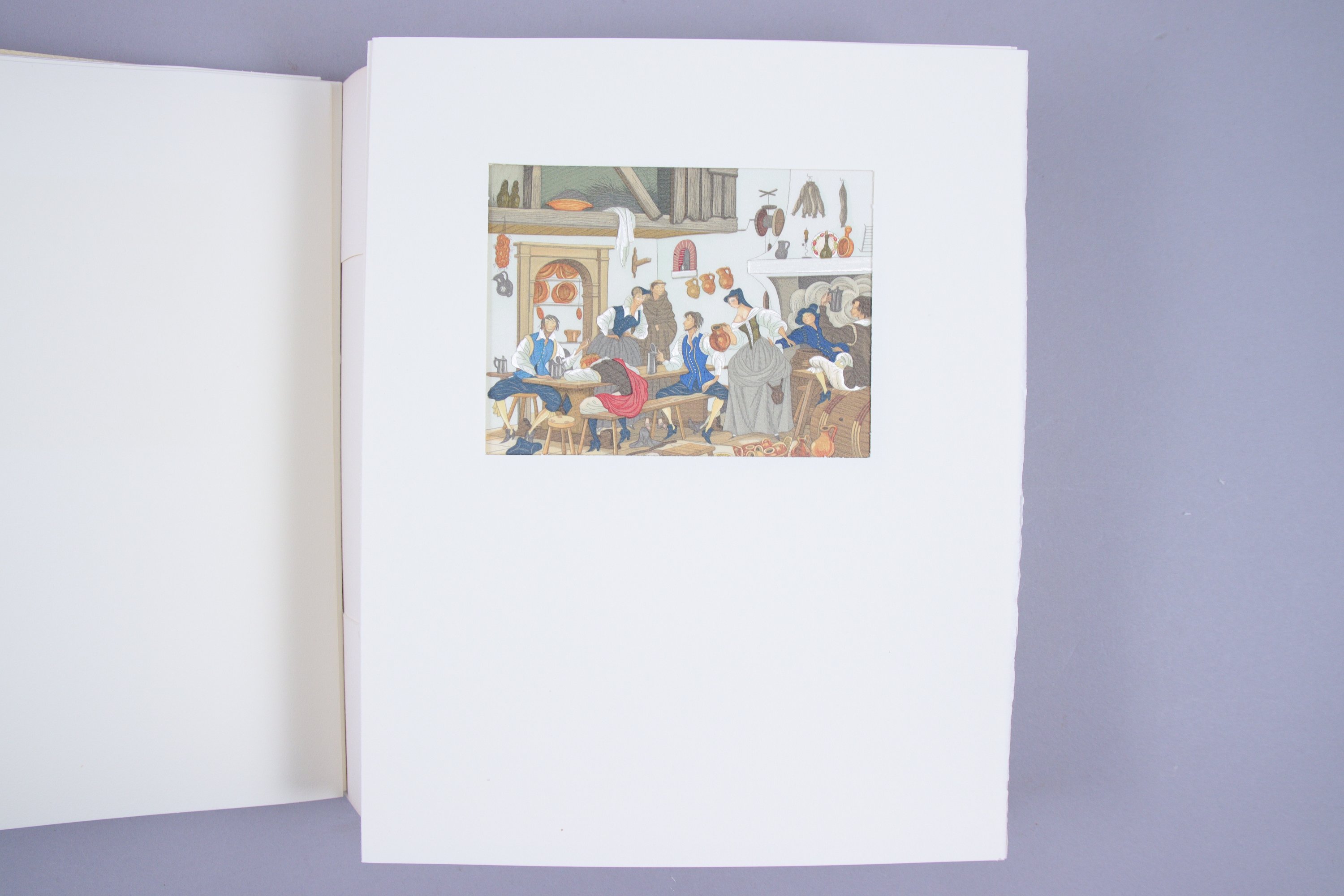 Tome III a: suite en couleurs sur soie ; suite en noir sur soie ; suite en noir sur vélin pur fil ; suite pour la décomposition des couleurs.Tome III b: 3 aquarelles originales ; texte illustré en couleurs ; 3 cuivres encrés originaux.