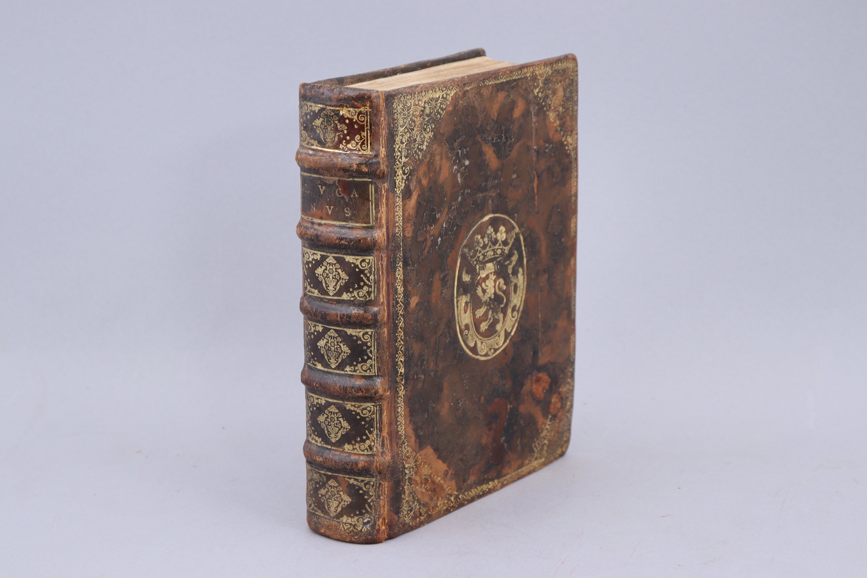 In-4°, (16 ff) 285 feuillets. Plein veau fin XVIIème, décor aux petits fers dans les angles, armes de Poitiers au centre des plats, toutes tranches dorées. Parfait état intérieur(Reliure tavelée)..