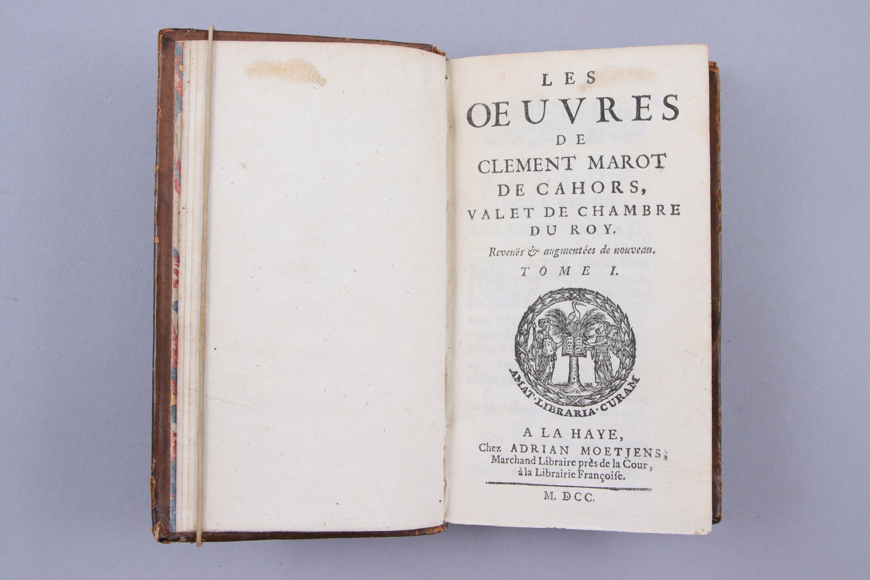 Les Oeuvres de Clément Marot de Cahors, valet de chambre du Roy. Revues et augmentées de nouveau.. La Haye, Adrian Moetjens. 1700
