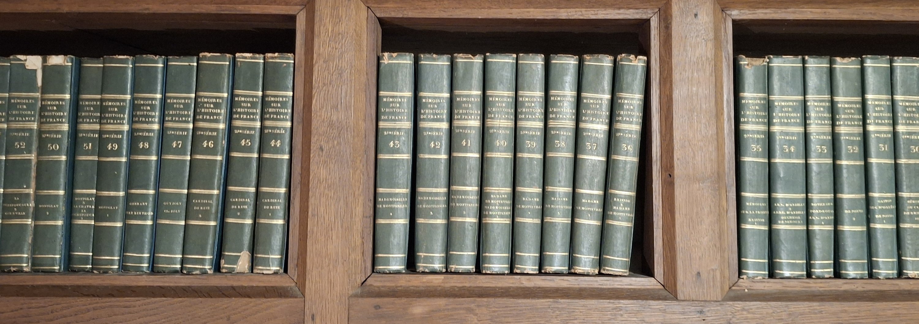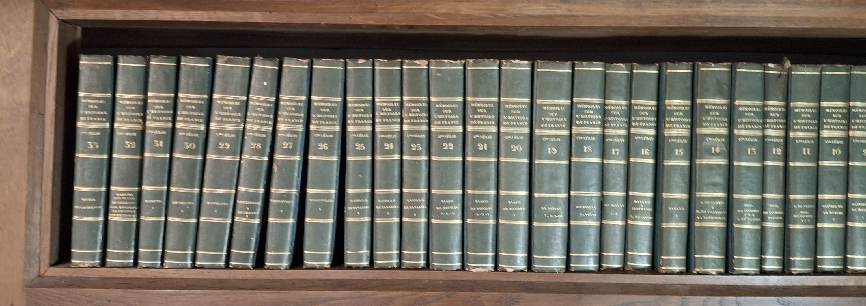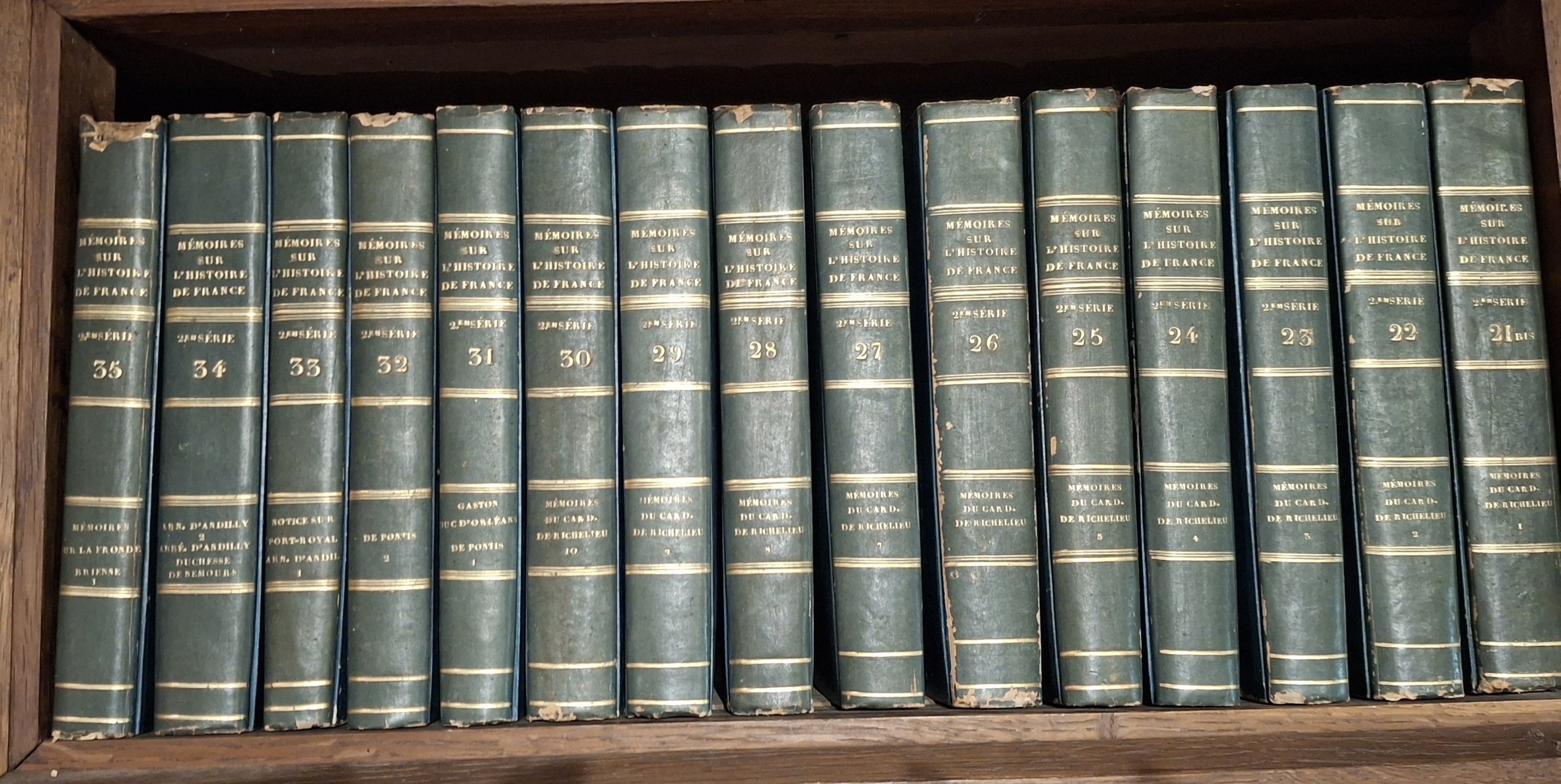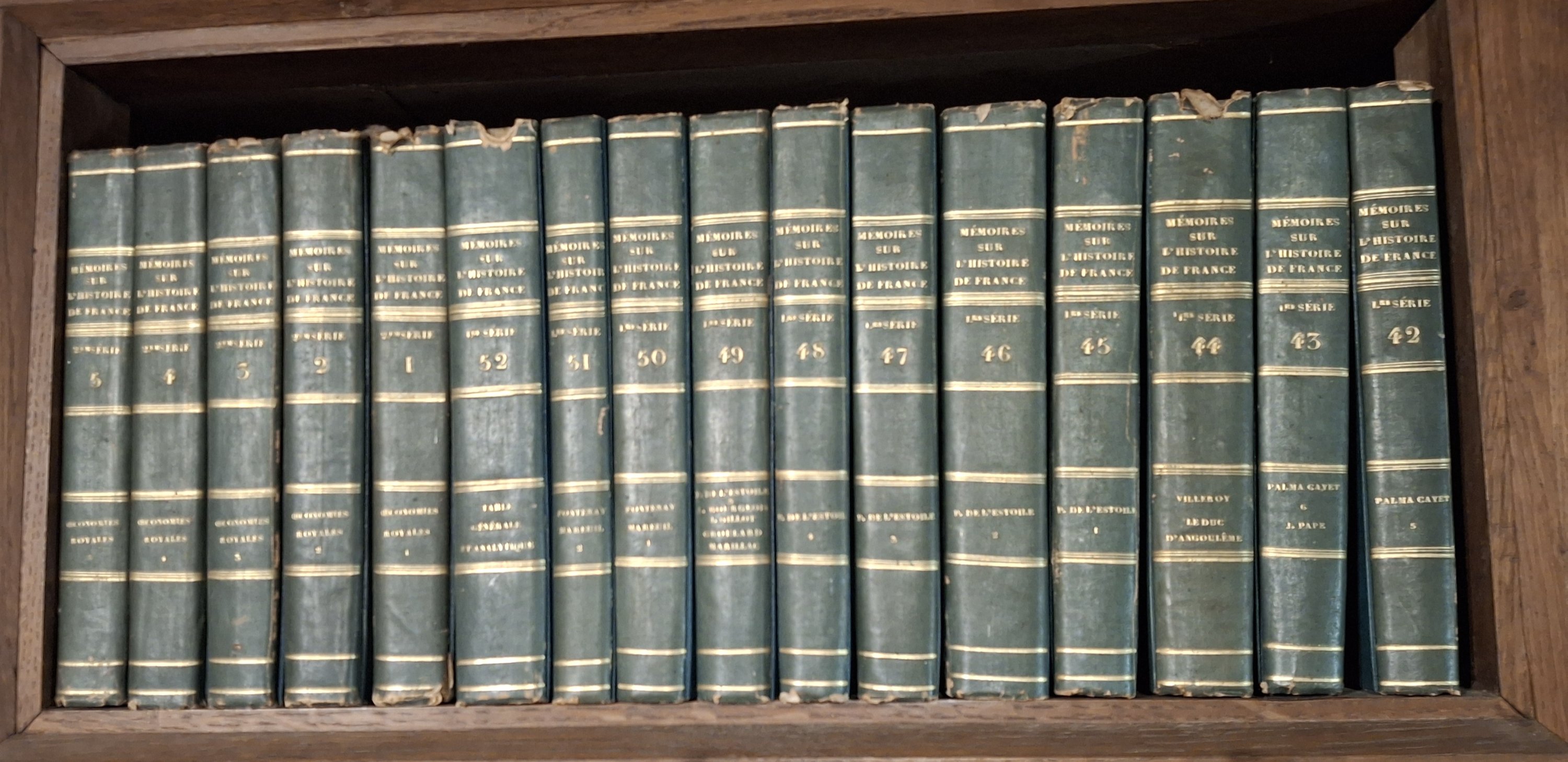 Rare réunion des 3 séries des mémoires relatifs à l’histoire de France, du Vème siècle à 1760.