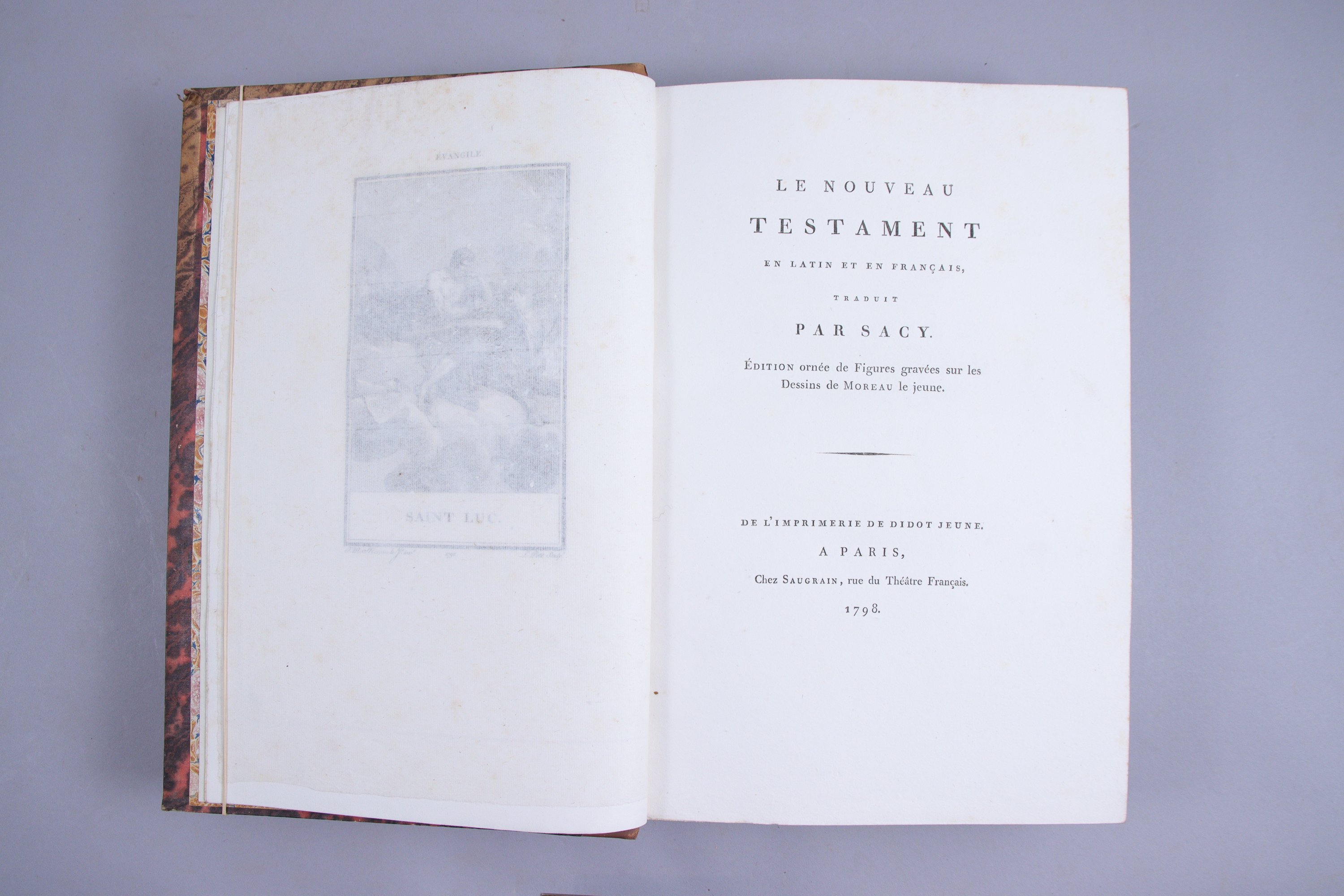 Le Nouveau Testament en latin et en français, traduit par Sacy. Edition ornée des figures gravées sur les dessins de Moreau le Jeune.