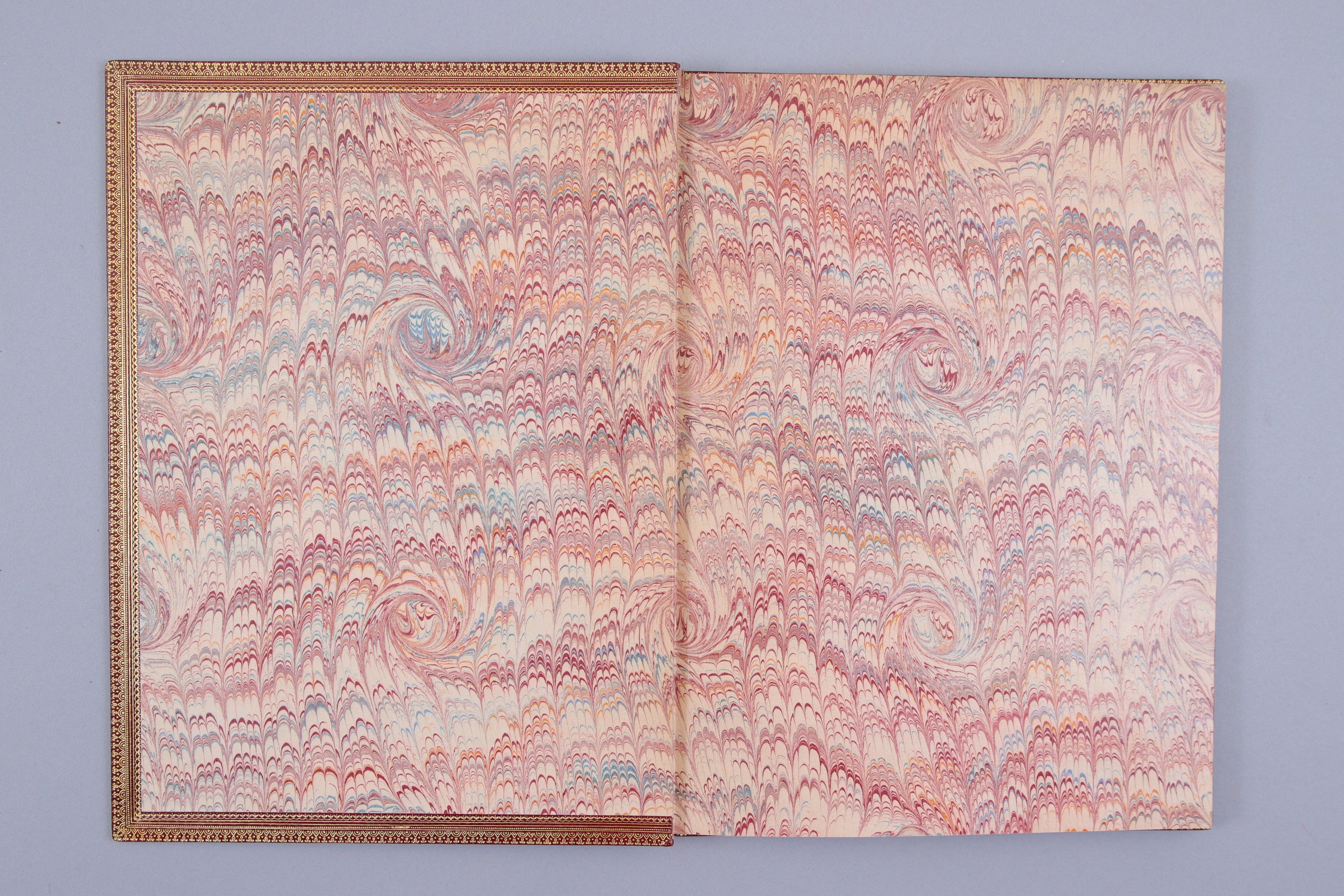 In-4°, (6 ff.) et 87 pages. Maroquin janséniste bordeaux, dentelles intérieures, tranches dorées. Reliure du XXème siècle, signée Marcel Godillot. (Le frontispice manque. Charnière frottées).