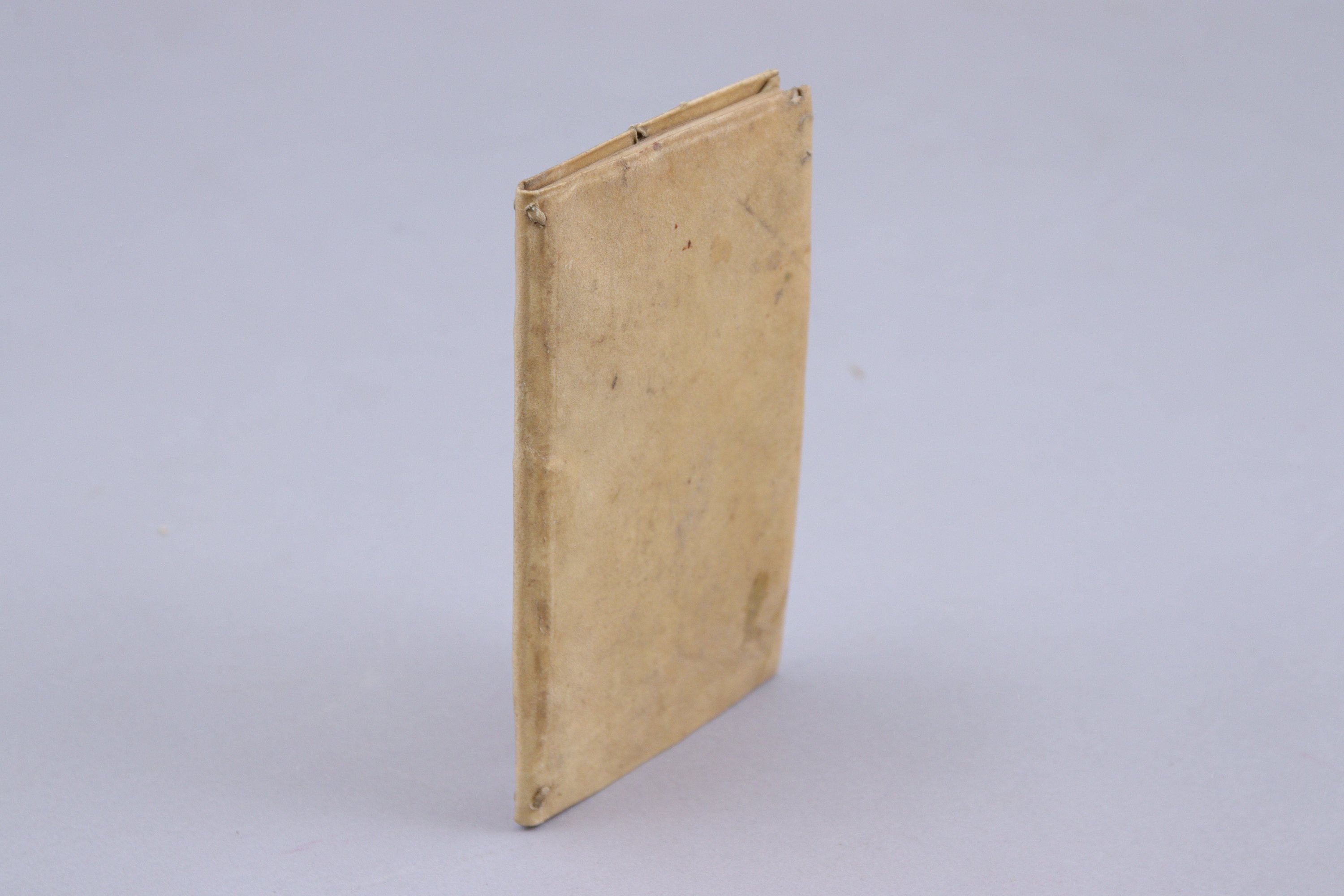In-12 (133 X 77 mm). 23 feuillets. Reliure moderne faite dans un vélin ancien. (Le dernier feuillet [B12], qui est blanc, manque. Lacune d'environ 1 mm2 entre deux lignes, sans atteinte au texte, sur le feuillet [B11]).