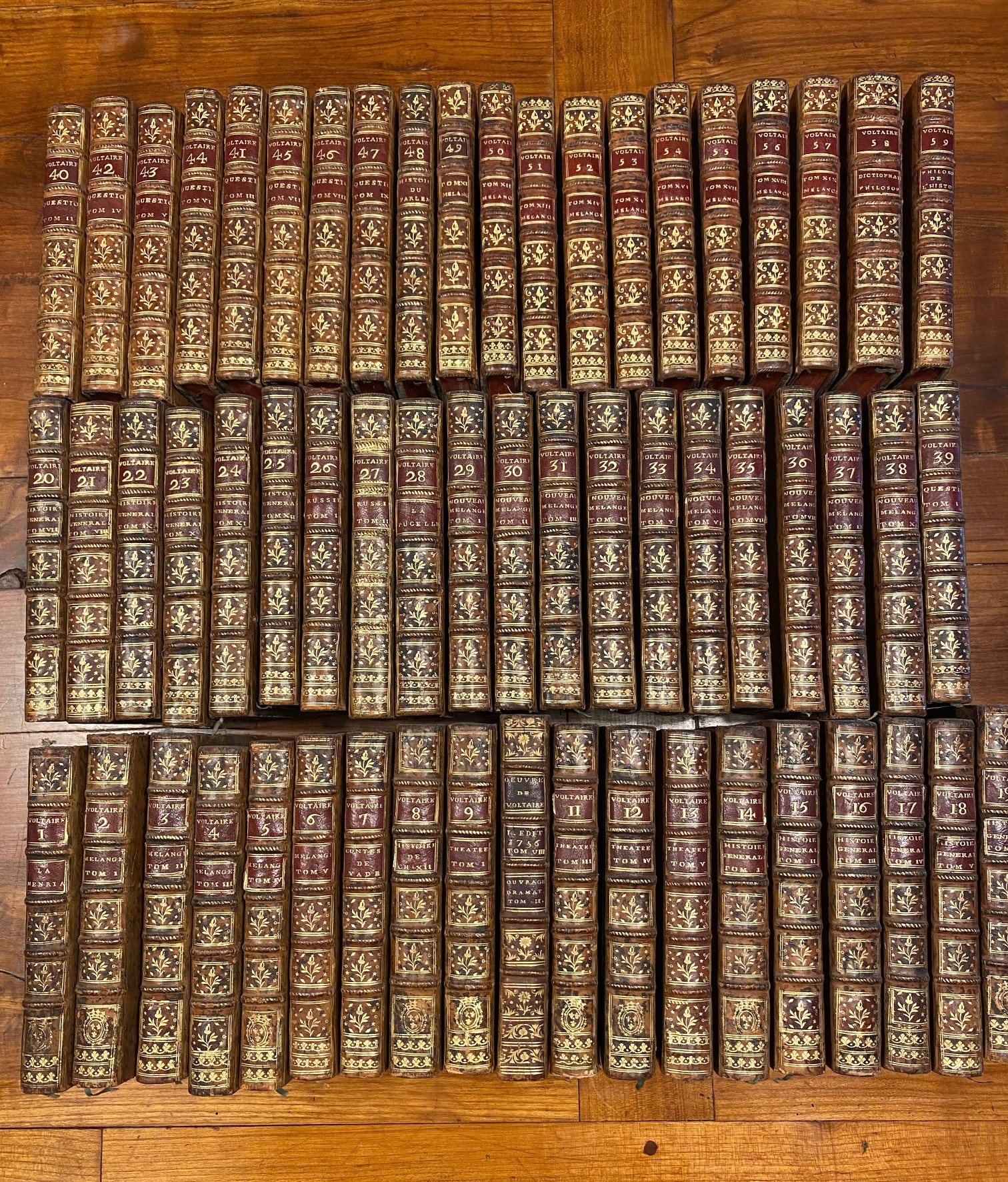 1)-Les 17 volumes de la Collection complette de M. de Voltaire. Première édition. (Cramer, Genève), 1756. (Collation conforme à Bengesco 2133)
