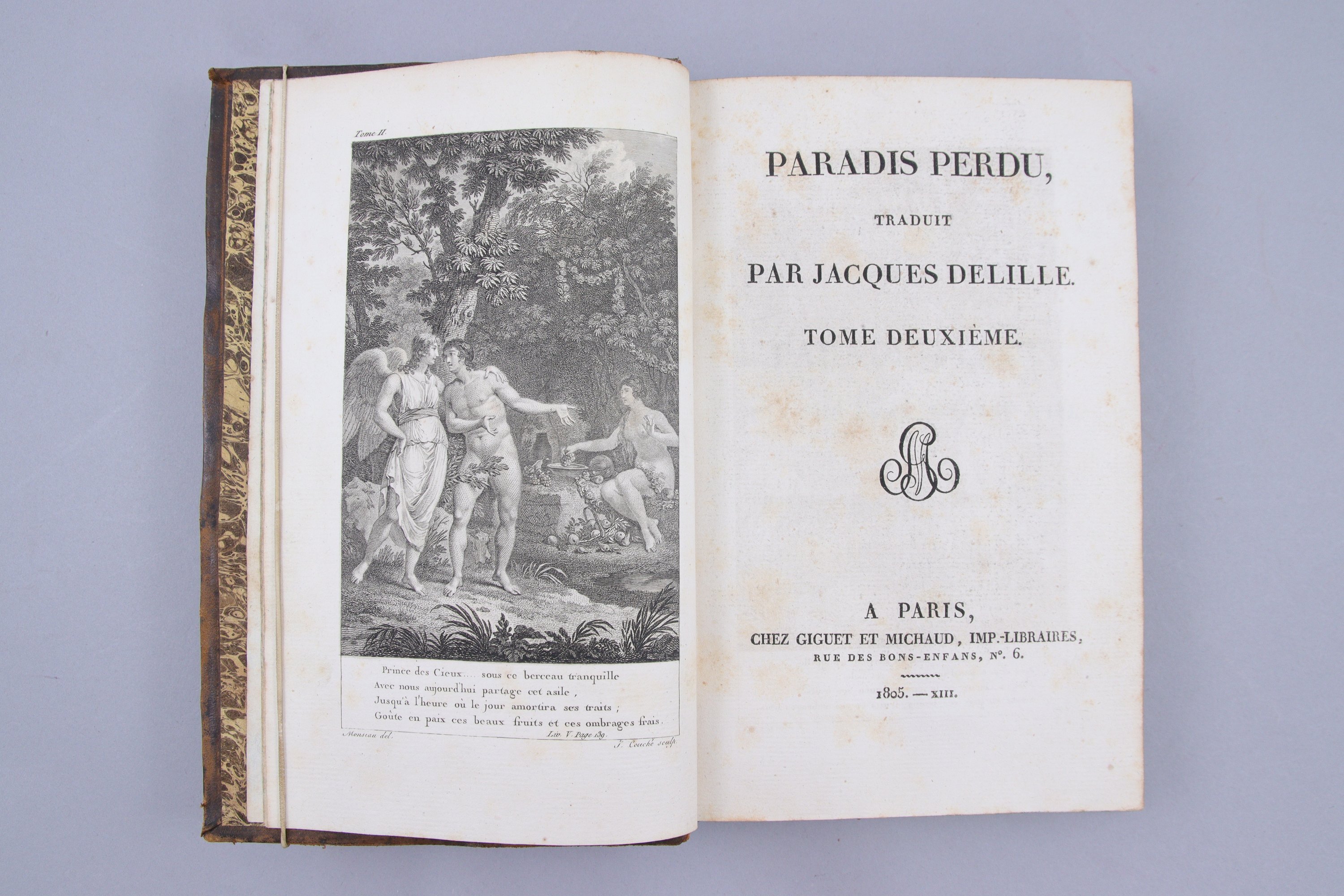 Paradise lost. A poem in twelwe books. Le Paradis perdu, traduit en vers français par Jacques Delille.. Paris, Giguet et Michaud. 1805