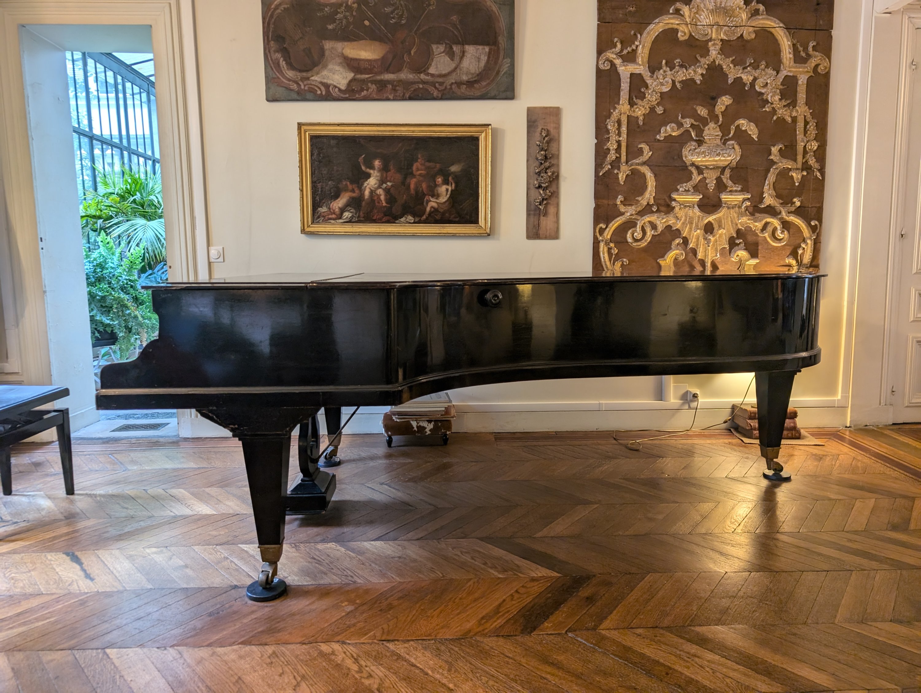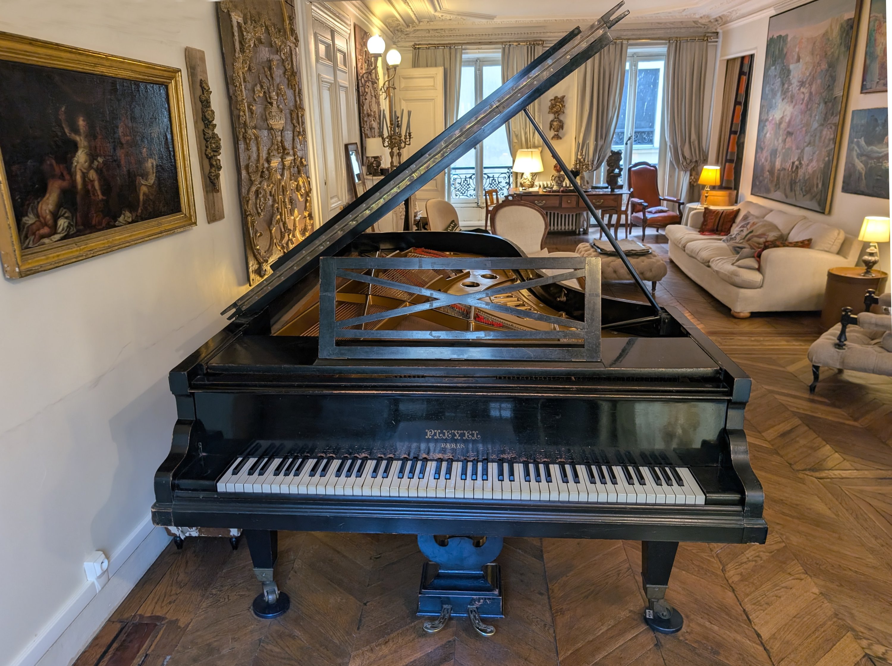- dans les registres de fabrication, il est indiqué pour le numéro 74 F788 (F correspond à fabrication): piano à queue modèle A acajou verni sorti d'usine le 28.09.1929 ;
