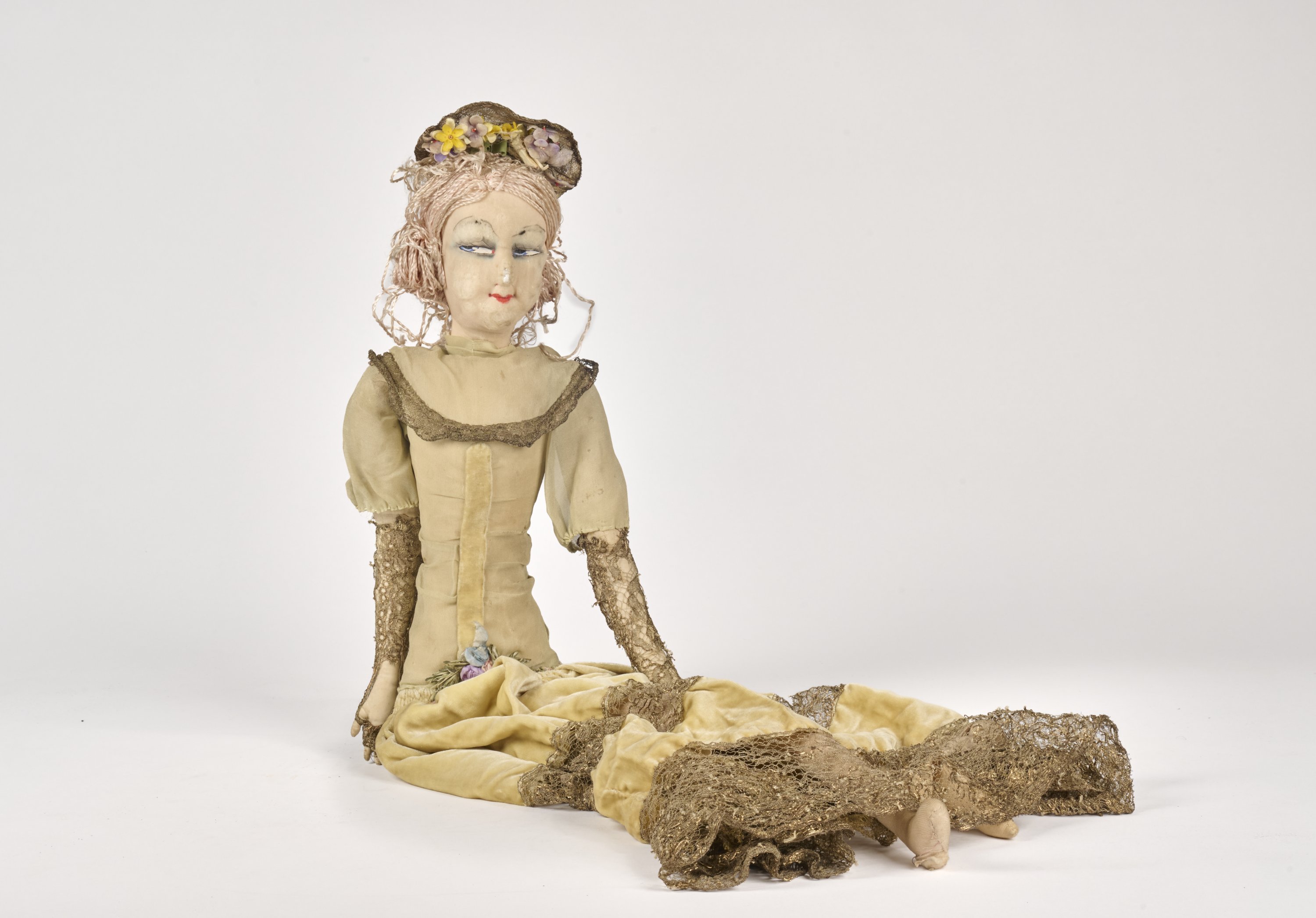 La mode des "poupées-portraits" atteint son paroxysme dans le Paris des années folles. Outre les poupées aux traits caricaturaux de Marie Vassilieff (Russe, 1884-1919), il faut noter les productions de Stefania Lazarska et de Germaine de Roton (Française, 1889-1942). Alors que la deuxième produit, en sus de poupées-portraits, notamment de Joséphine Baker (35e vente Garden-Party, Rouillac, 4 juin 2023, n°2), des poupées de salon en tissu, inspirées des contes slaves et des chefs-d'oeuvre de la peinture, la troisième représente Ida Rubinstein et La Pavlova en 1924 (Lyon, Musée des Beaux-Arts, inv. FNAC 8680 1 et 2). Lazarska réunit une trentaine d'artistes dans l'atelier polonais qu'elle fonde à Paris en 1915 (cf. "Pionnières. Artistes dans le Paris des années folles", cat. exp., Paris, Musée du Luxembourg, 2 mars - 10 juillet 2022, Paris, RMN, 2022, p. 73, 82-83). Notre poupée est toujours restée dans la descendance de la comtesse Tatiana Scheremetiew, dont la carrière de chanteuse internationale débute dès l'âge de 14 ans avec son interprétation de "Blanche-Neige" dans la version suédoise du film de Walt Disney.