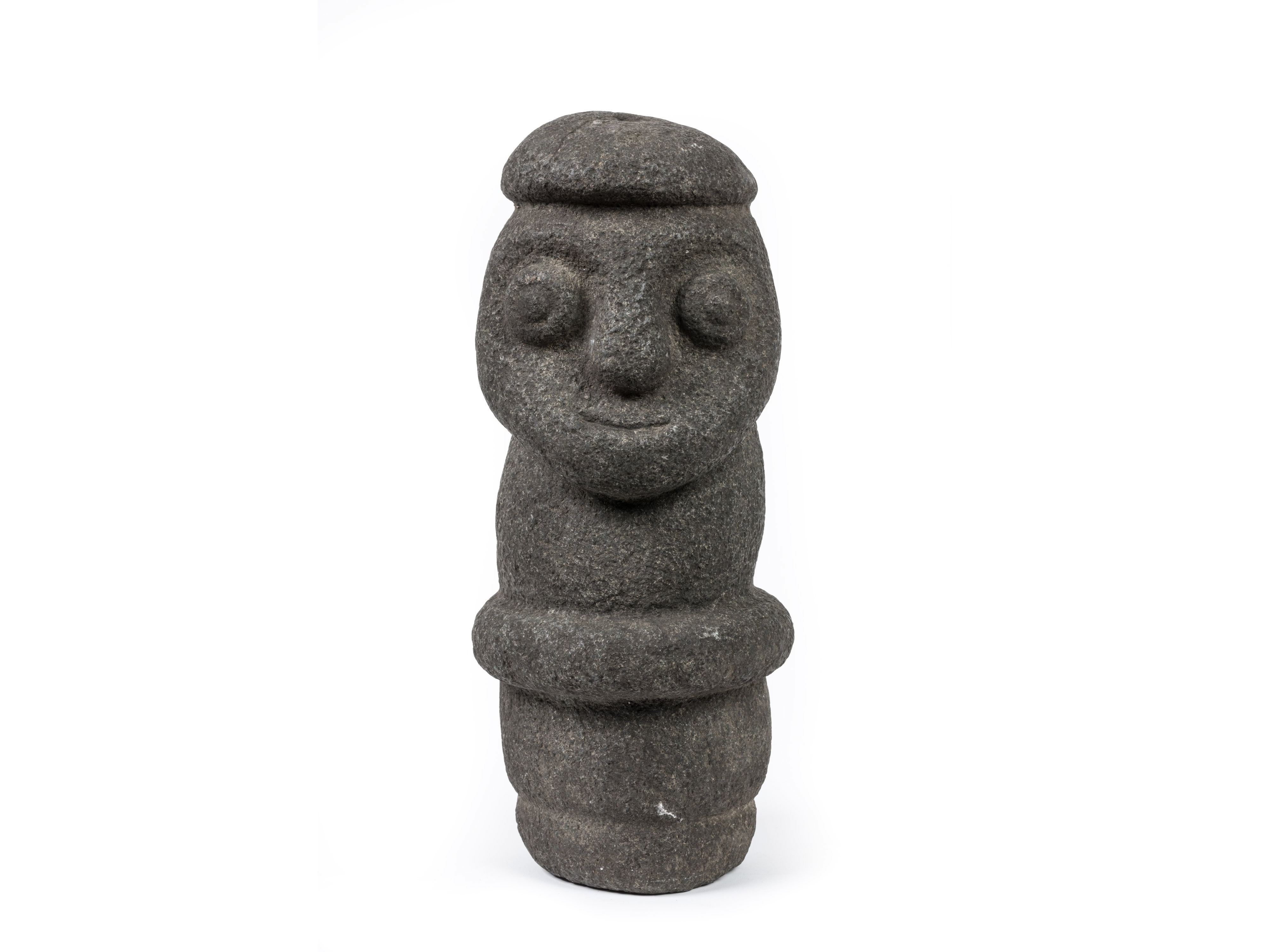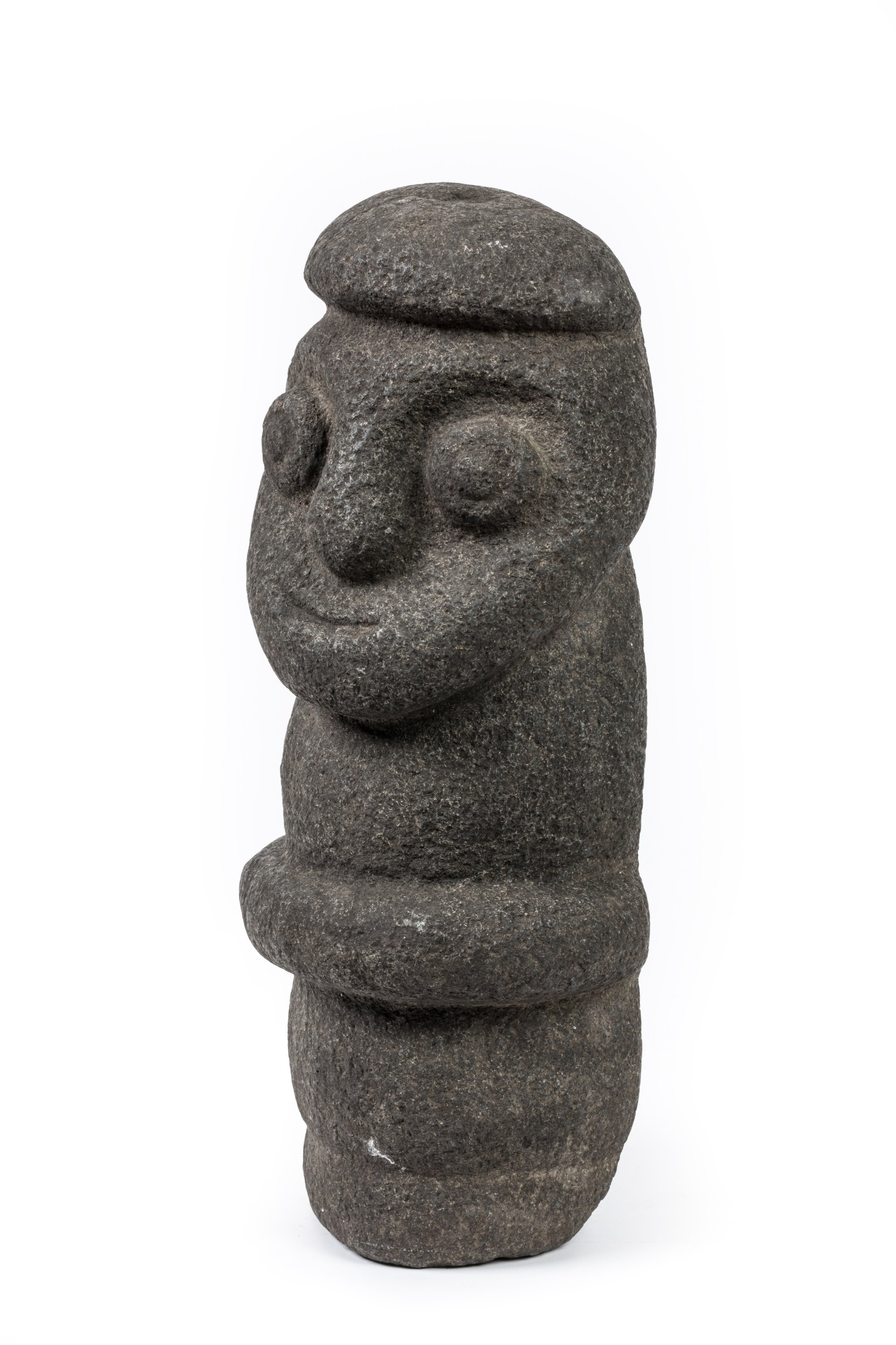 Etrange destinée des sculptures en roche volcanique, restées longtemps anonymes, que celle desdits « Barbus Müller », sobriquet inventé par Dubuffet vers 1946, pour nommer plaisamment un ensemble de bustes et têtes présentant des caractéristiques stylistiques communes (yeux proéminents, troués ou avec pupilles en affleurement, nez en goutte, bouche sommairement tracée, ou lippue, parfois, mais rarement des barbiches, pas de bras, une matière d’origine volcanique ), avec une allure d’idoles faisant songer à des fétiches, qu’il découvrit chez des amateurs d’art lointain (Charles Ratton, Josef Müller, Henri-Pierre Roché). Leur originalité, leur singularité, les désignent immédiatement à l’attention des esthètes. Dubuffet devina dans cette création sans auteur une rupture avec l’art traditionnel, même si elle relevait à l’évidence de l’art populaire français. Ce dernier recèle souvent ce genre d’authentiques créateurs singuliers, ne se limitant pas au folklore, et cultivant, involontairement ou pas, une indépendance novatrice.