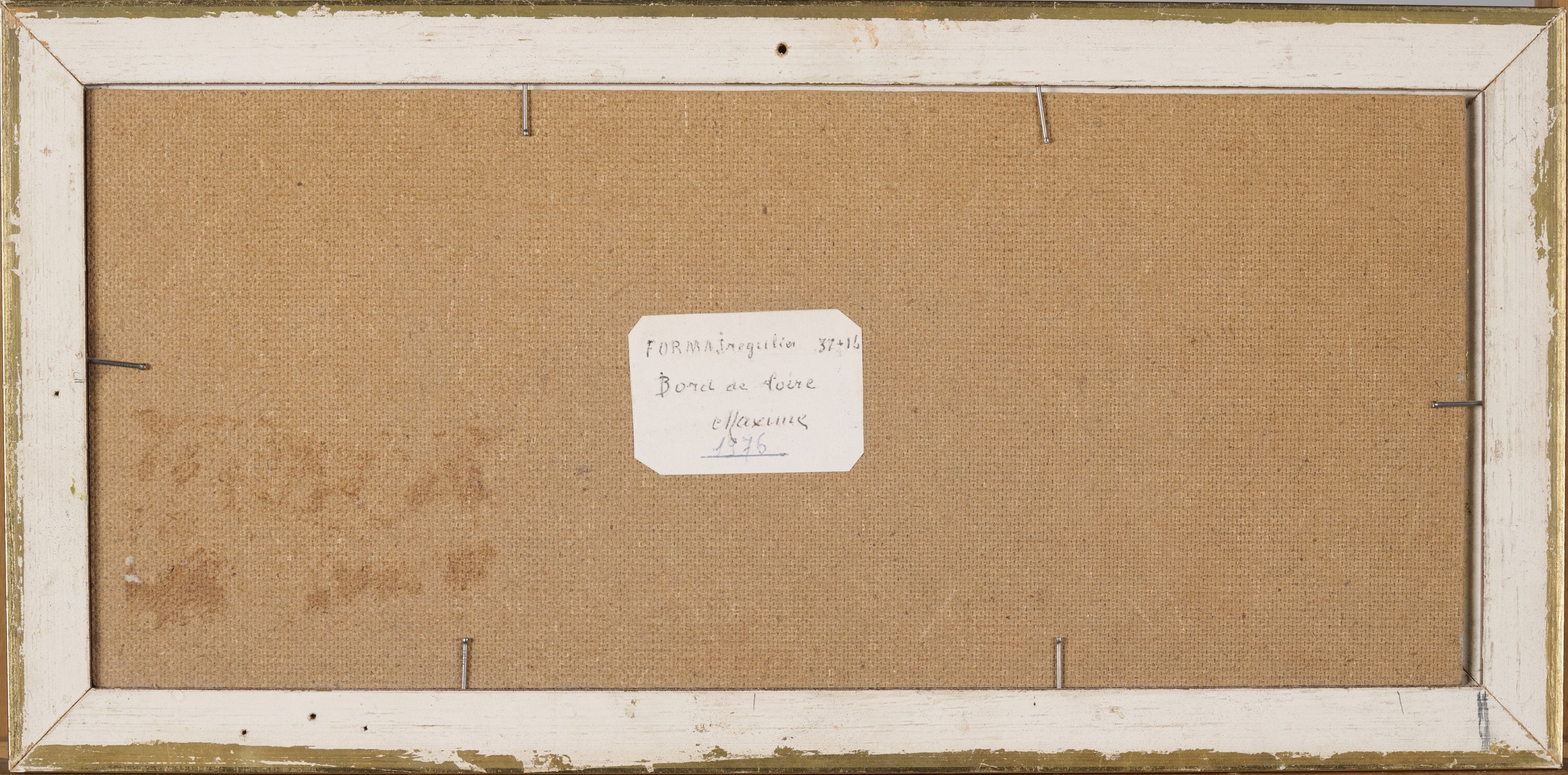 Signé en bas vers la droite. Etiquette au dos avec les mentions "Forma iregulier 37 x 16 / Bord de Loire / Maxime / 1976".
