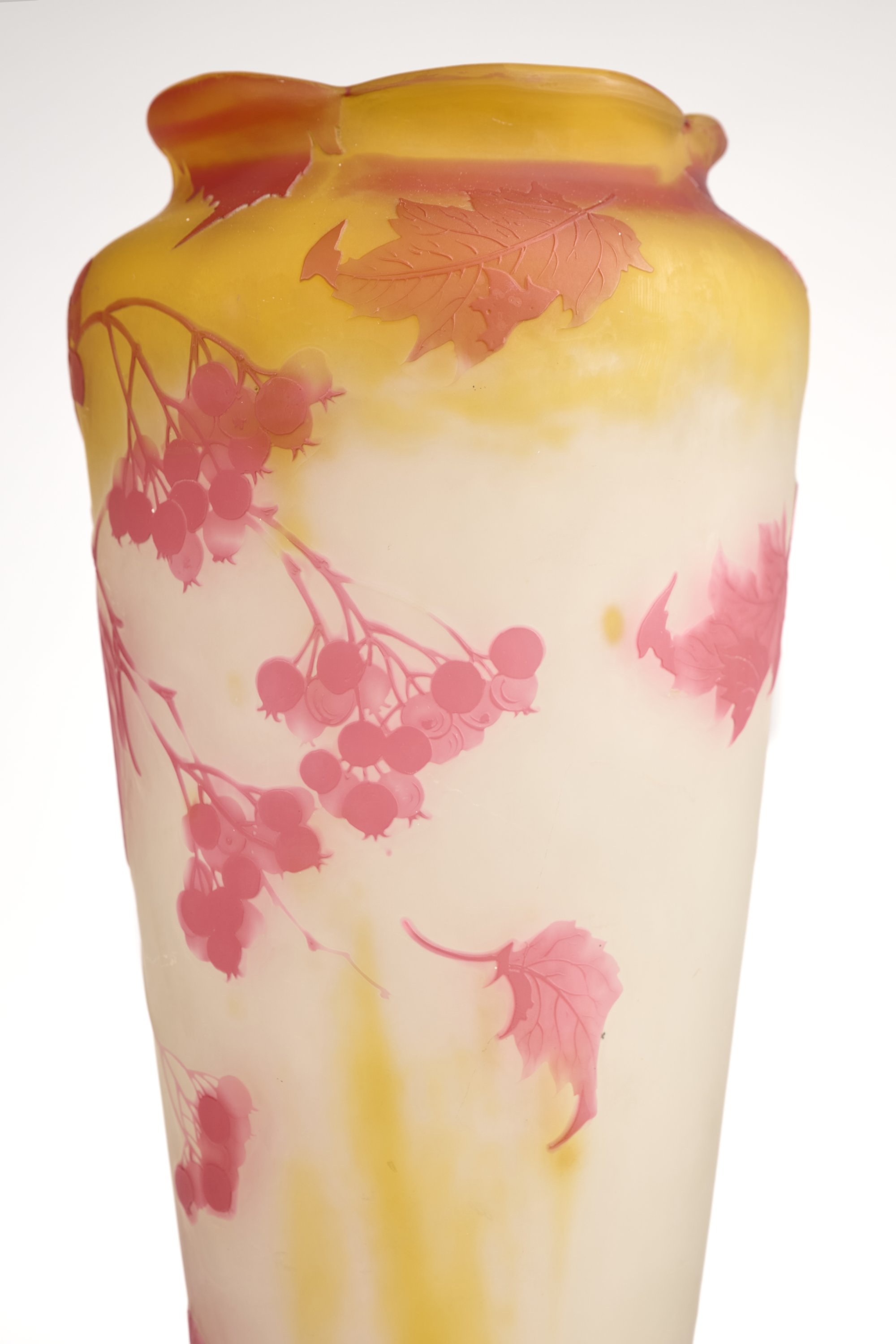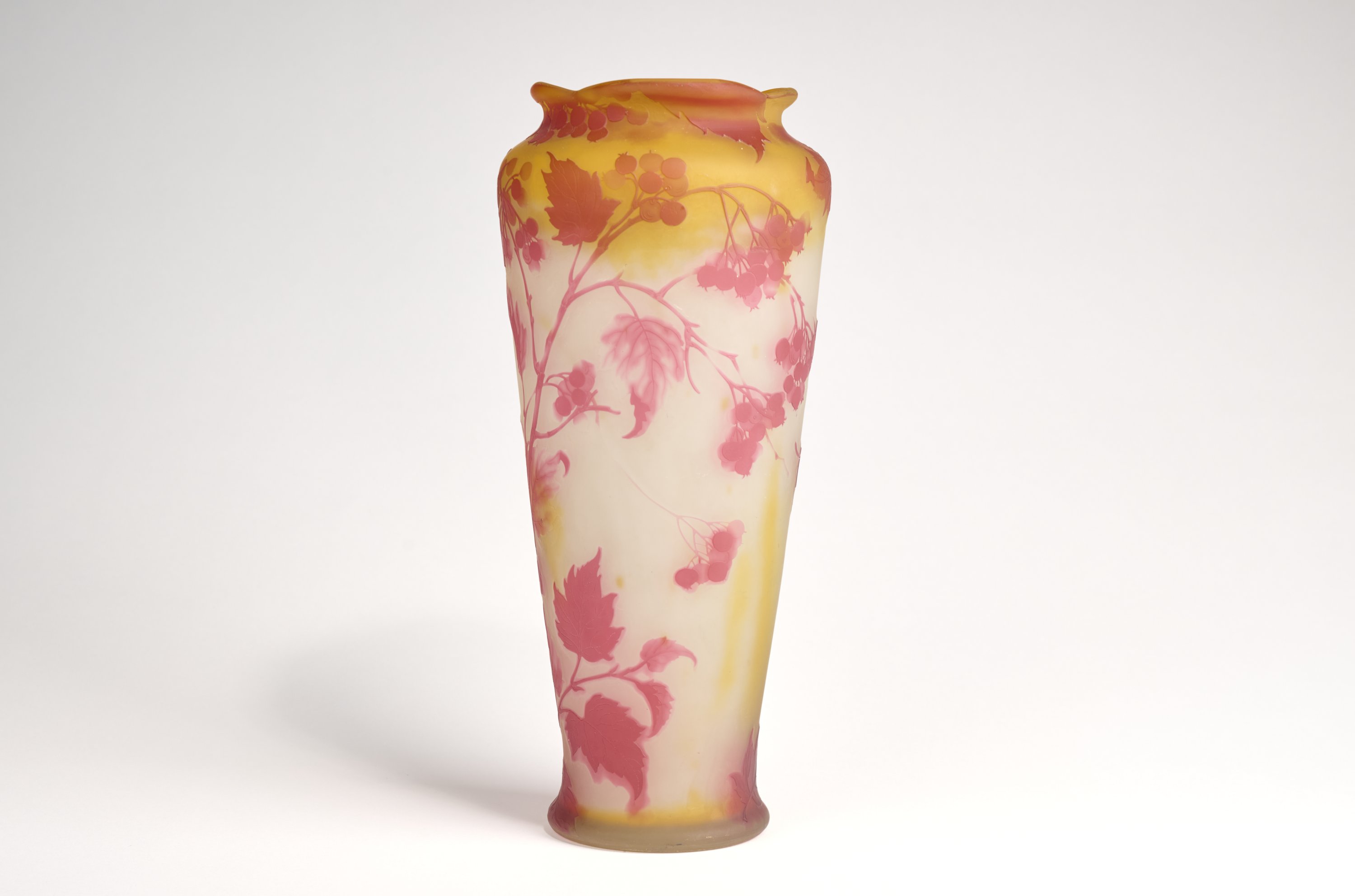 Verre multicouches à décor de cassissier dégagé à l'acide.