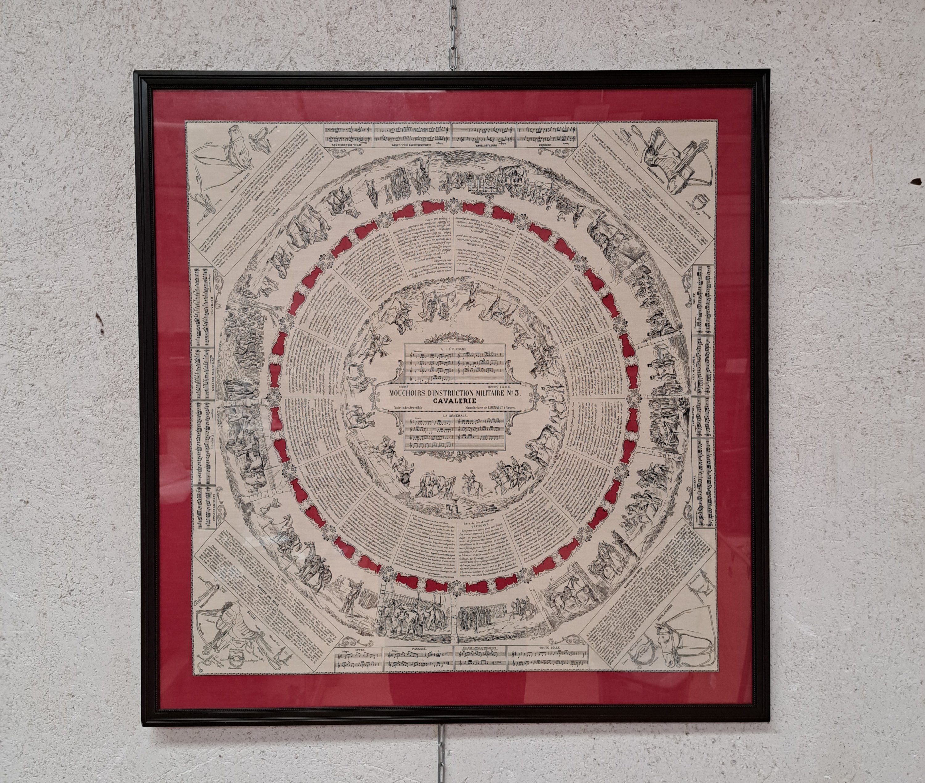 au décor d’instruction de cavalerie, dans son cadre.