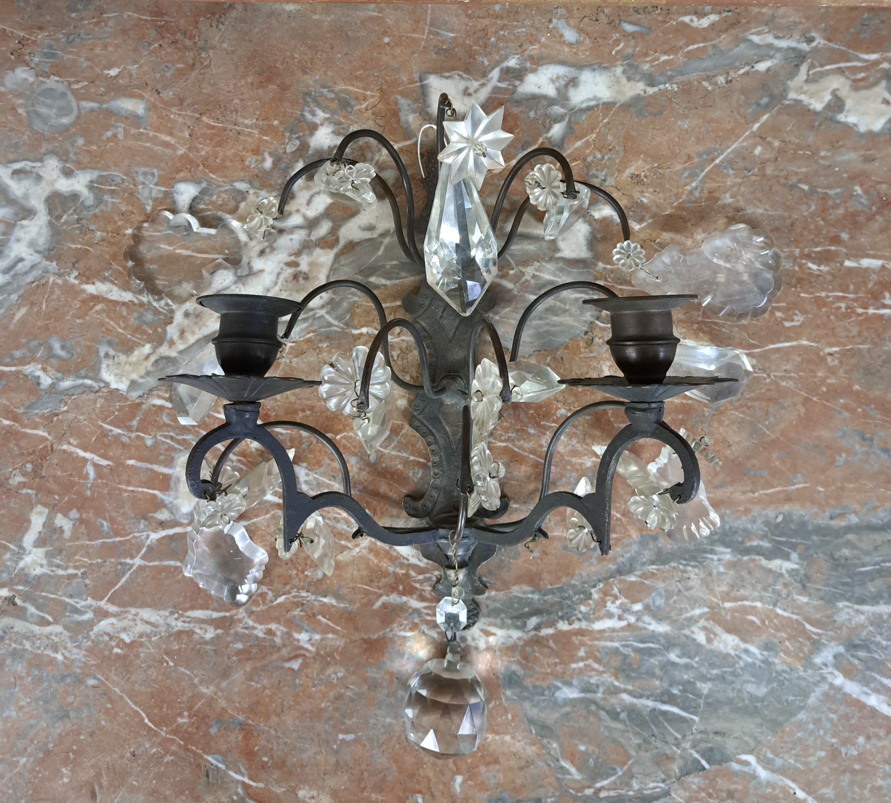 en bronze ornée de pampilles de verre.