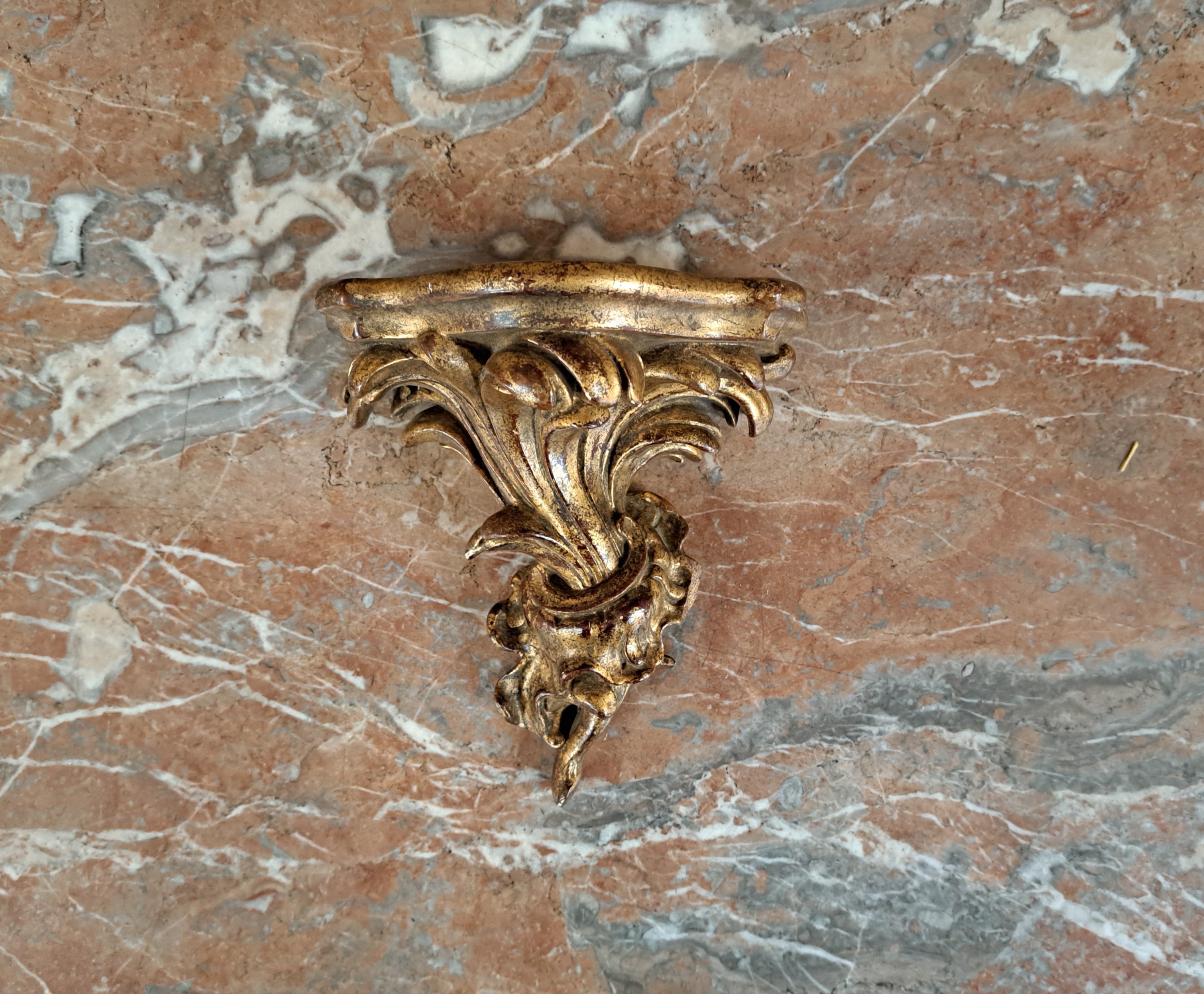 Joint: petite console murale en bois doré à décor de volutes.