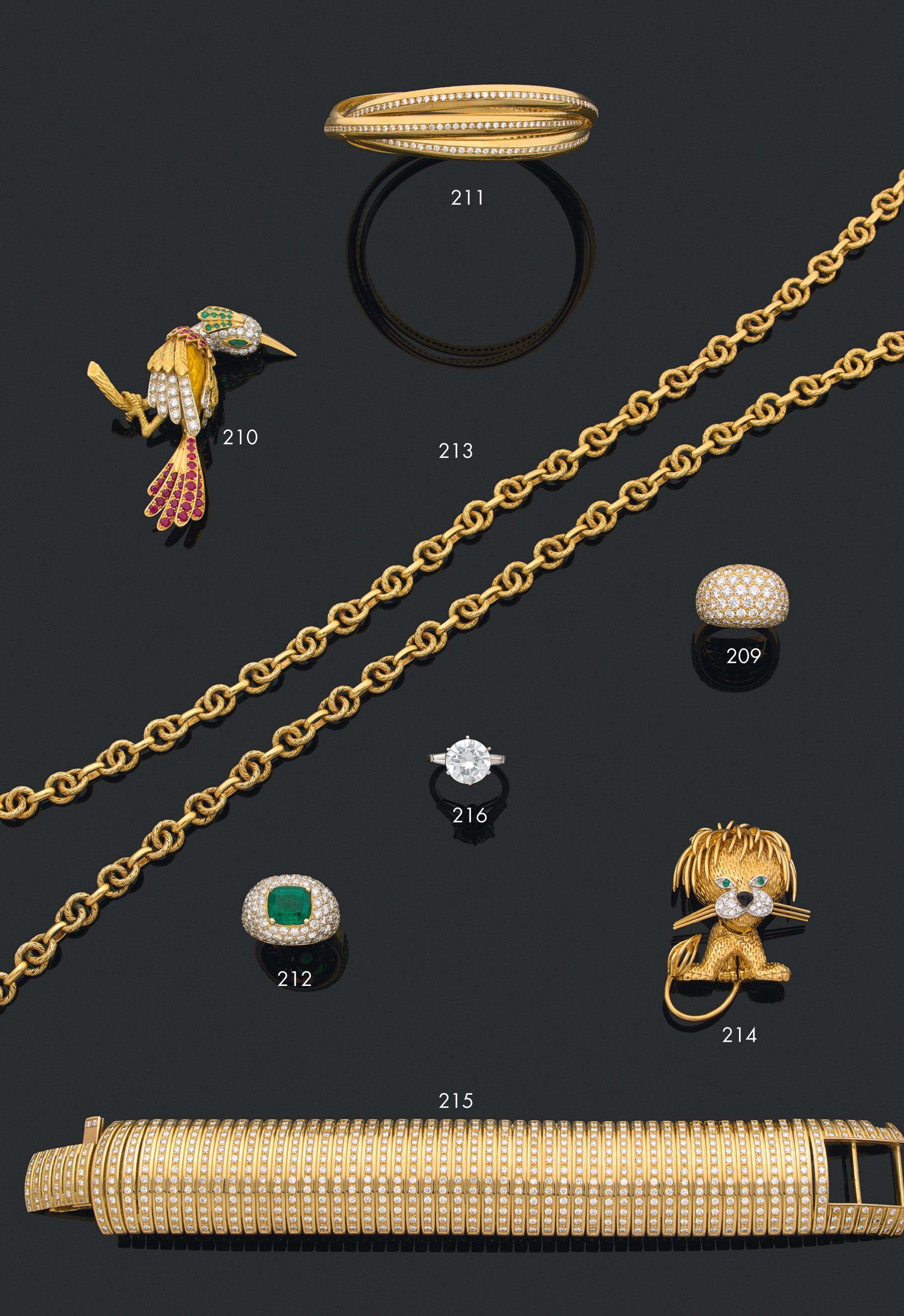en or jaune 750 millièmes, le centre de forme bombée, pavée de diamants ronds de taille brillant.