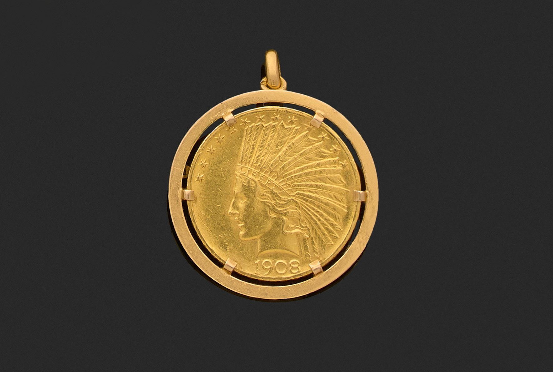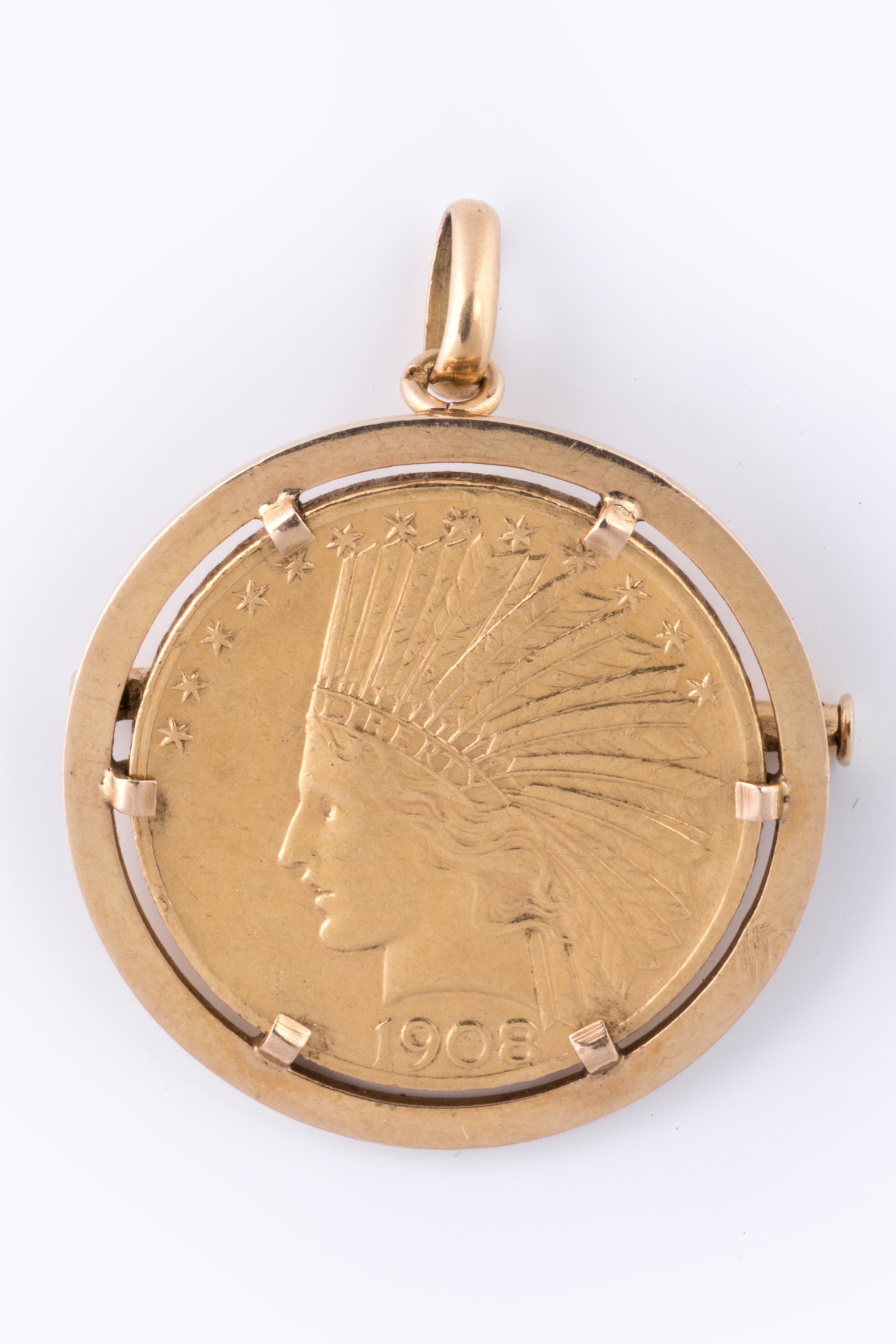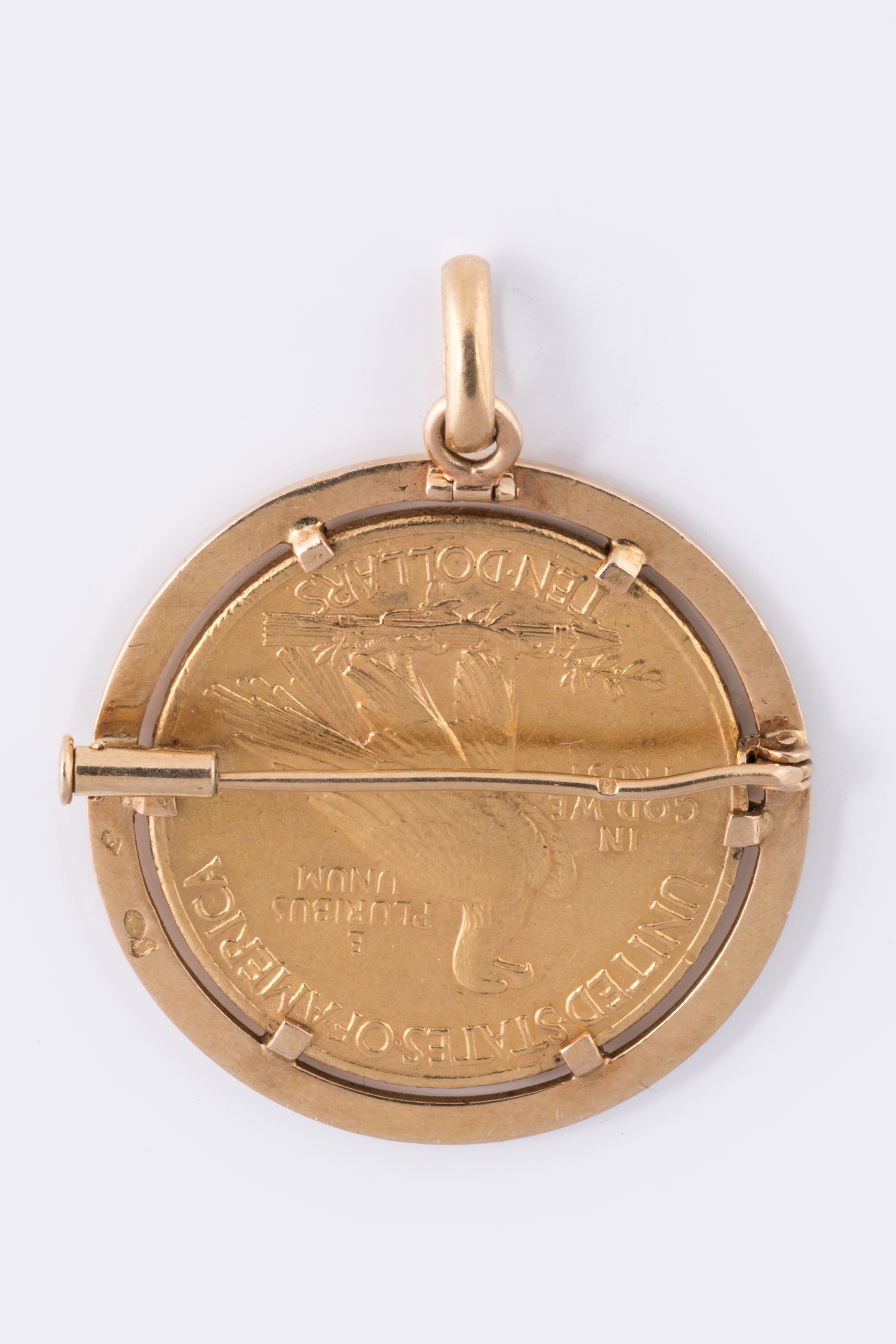 pouvant former broche en or jaune 750 millièmes orné au centre d'une pièce de 10 dollars US or.