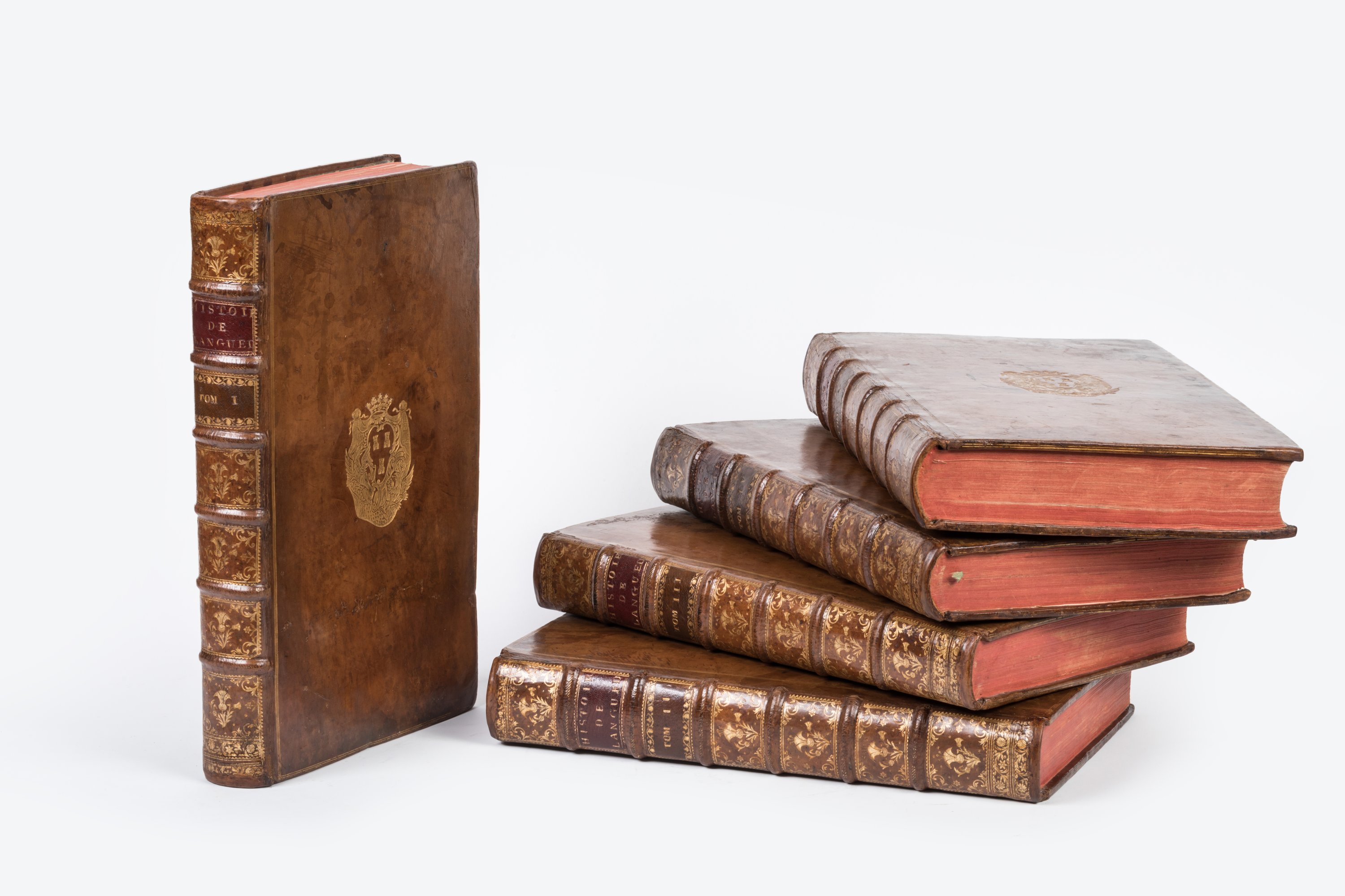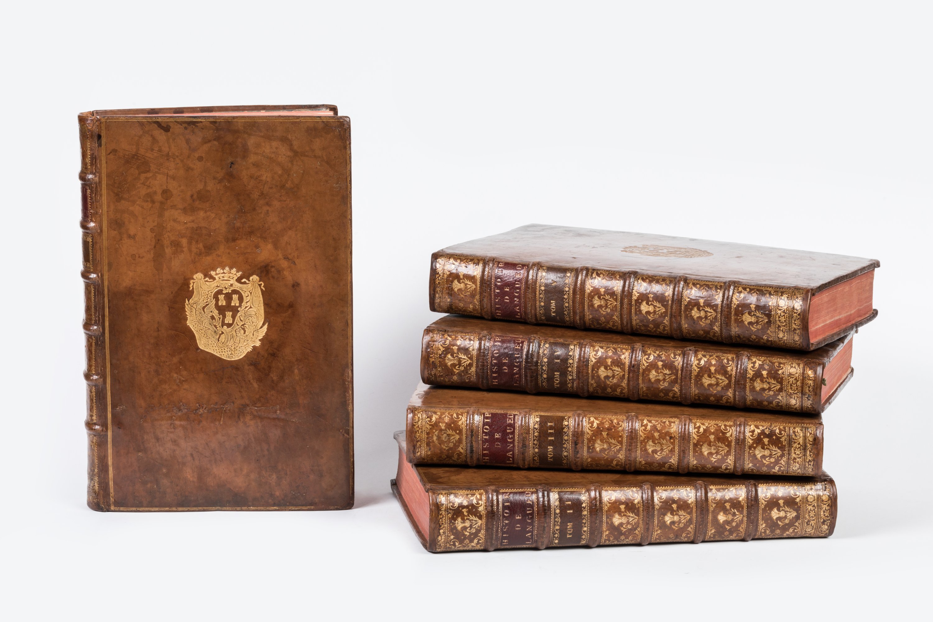 France, 1730-1745. A 5-volume series on the history of Languedoc compiled by two Benedictine monks. From the book collection of Madame de Pompadour, official mistress of French King Louis XV.