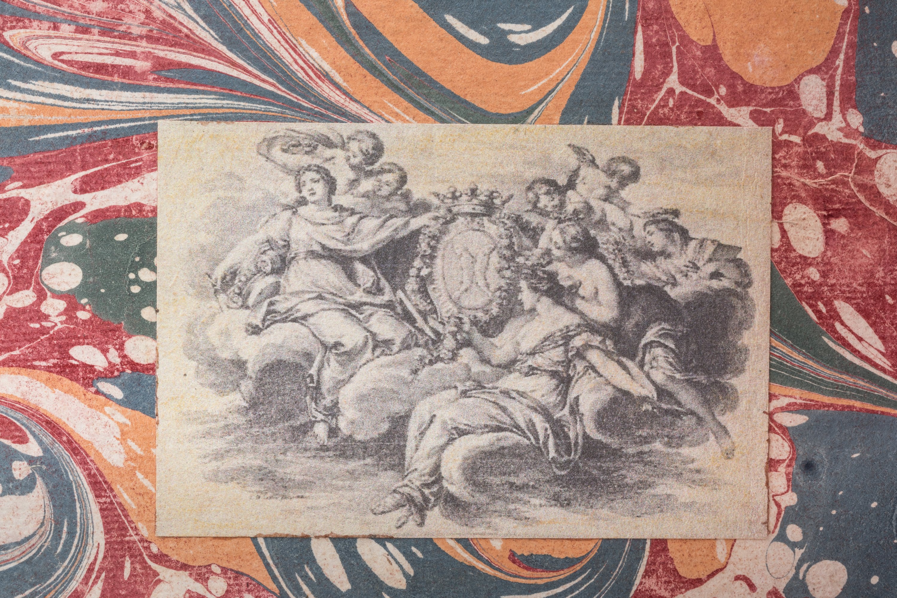 Provenance: vente après décès de la Bibliothèque de Madame de Pompadour, 1765, n°3040, décrit comme suit:"5 vol. in-fol, fig. v.f." (5 volumes in-folio, figures, veau-fauve).