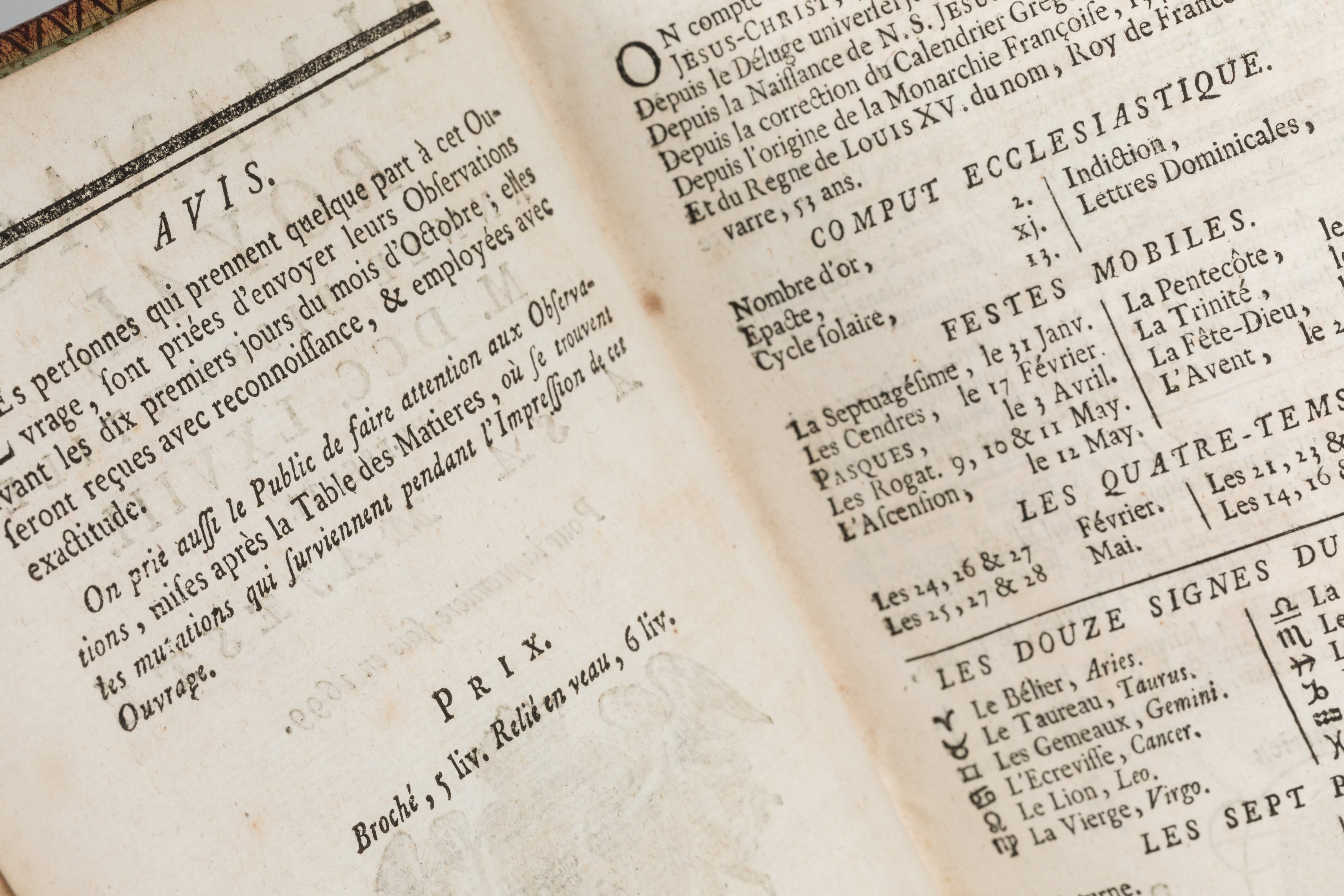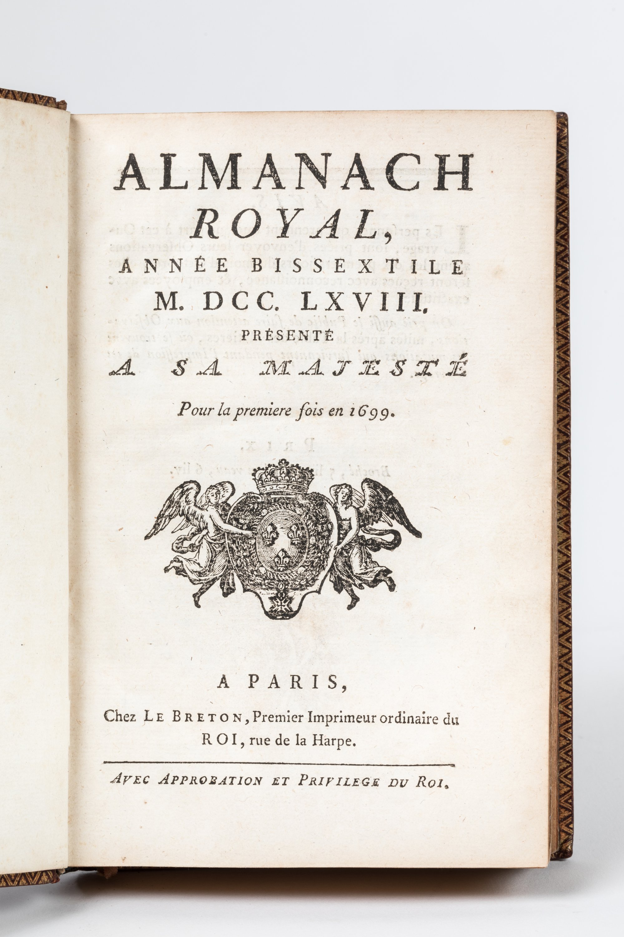 Imaginé en 1684 par Laurent d'Houry, l'Almanach Royal reçut en 1699 l'approbation de Louis XIV. Il fut publié chaque année de 1700 à 1792.