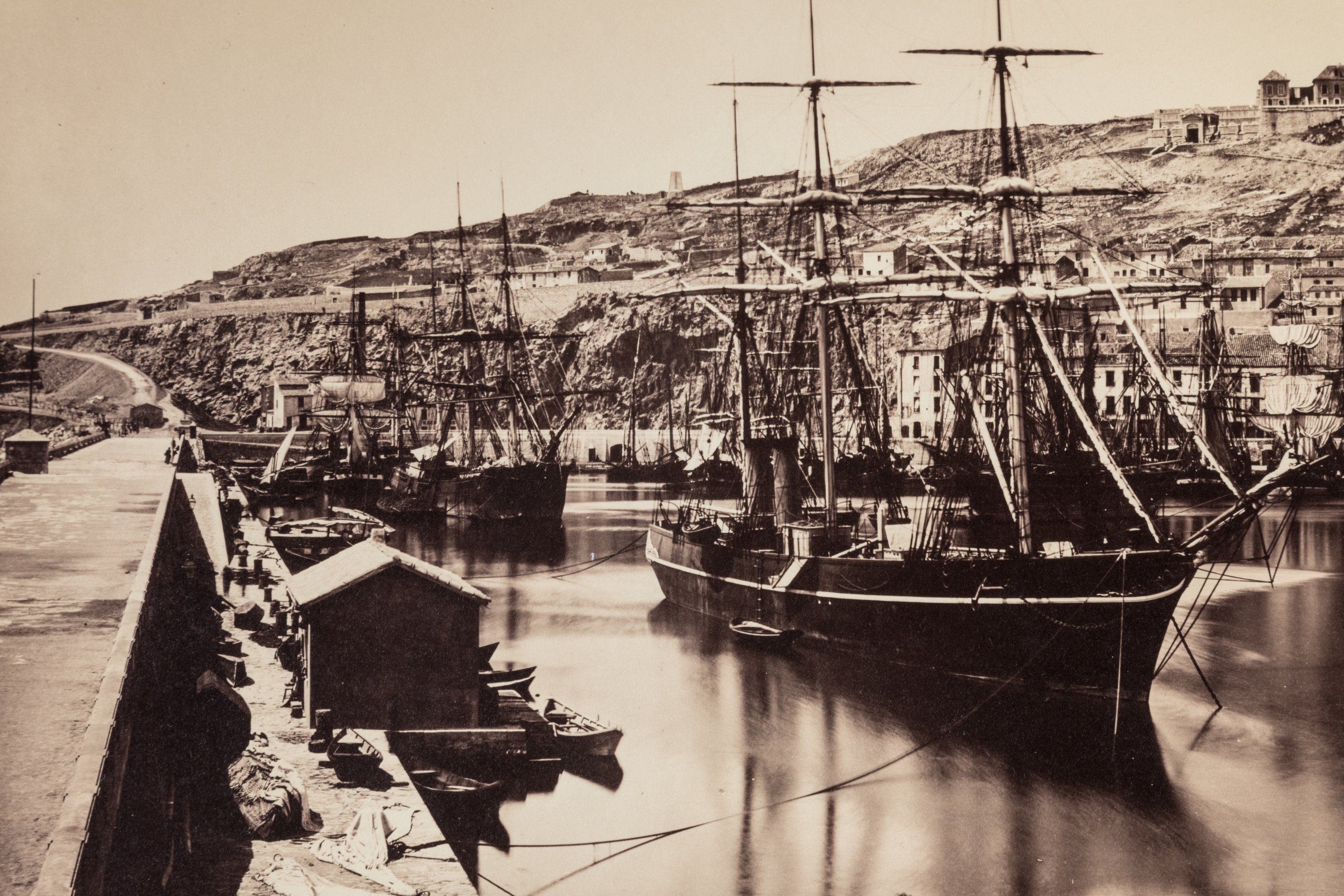 Gustave Le Gray, Spring 1857. An albumen print of a collodion glass plate negative depicting ships in the harbour of Sète, among which the "Saïd", built in the Sète shipyards for Mohammed Saïd Pacha, Vice King of Egypt.