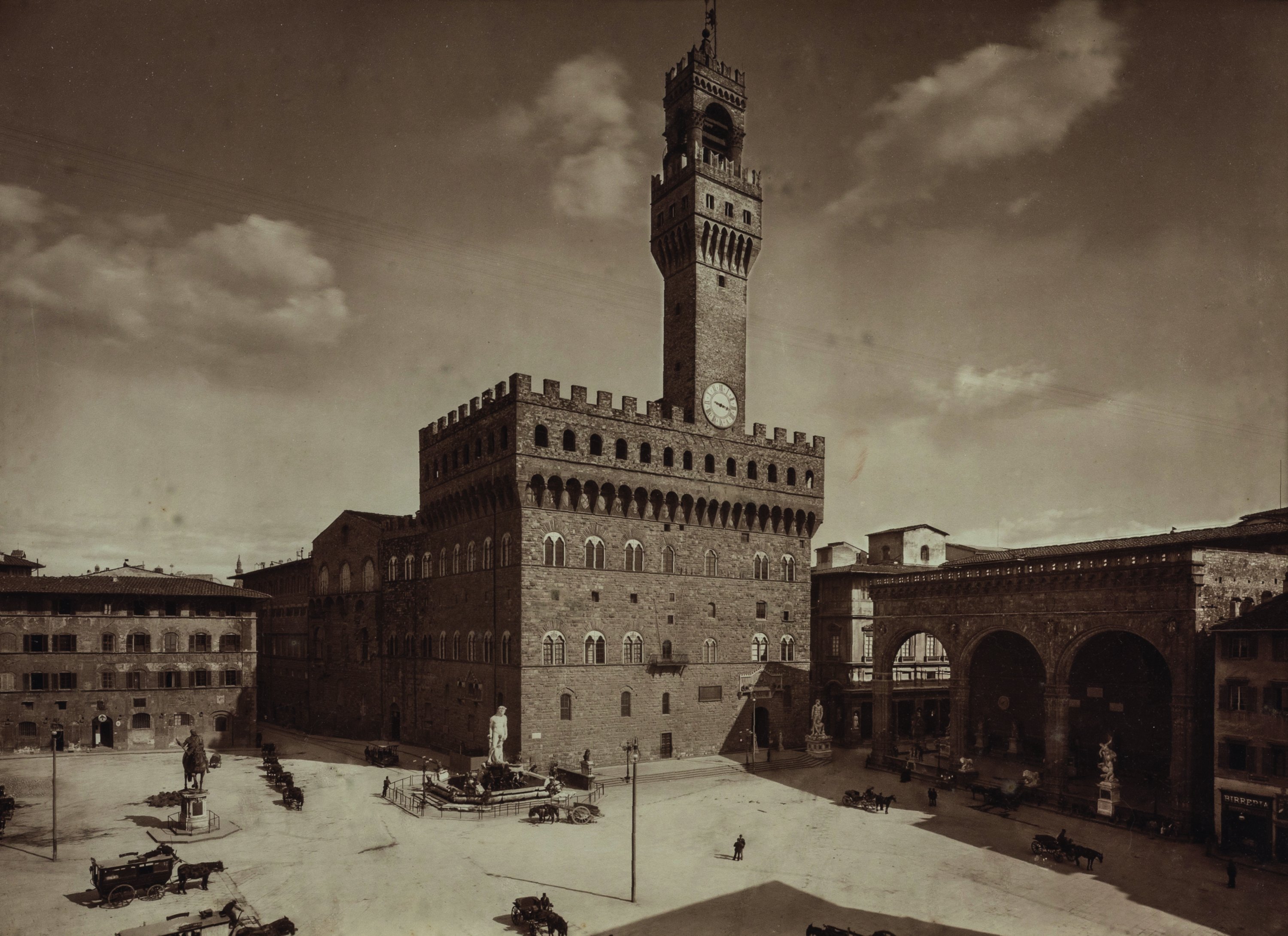 Fratelli Alinari, 1853-1860. A pair of photographs of Palazzo Vecchio in Florence, Italy.