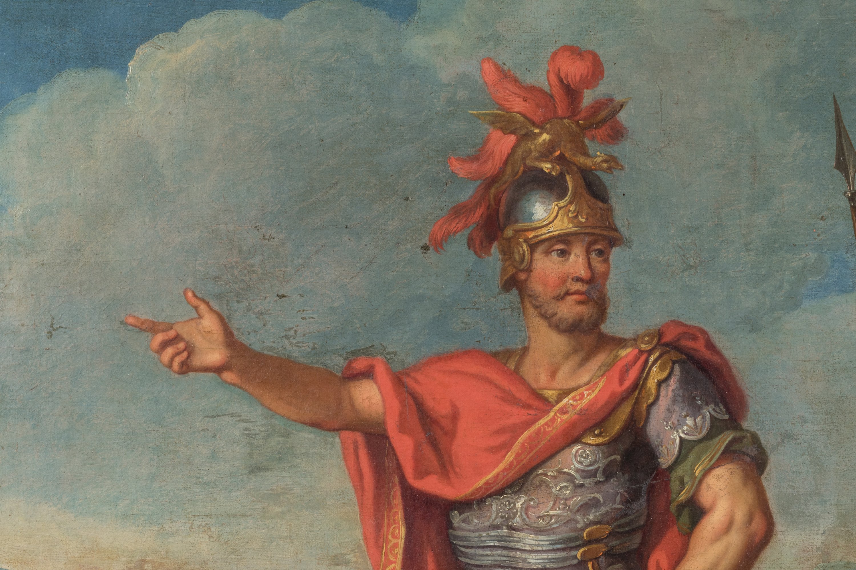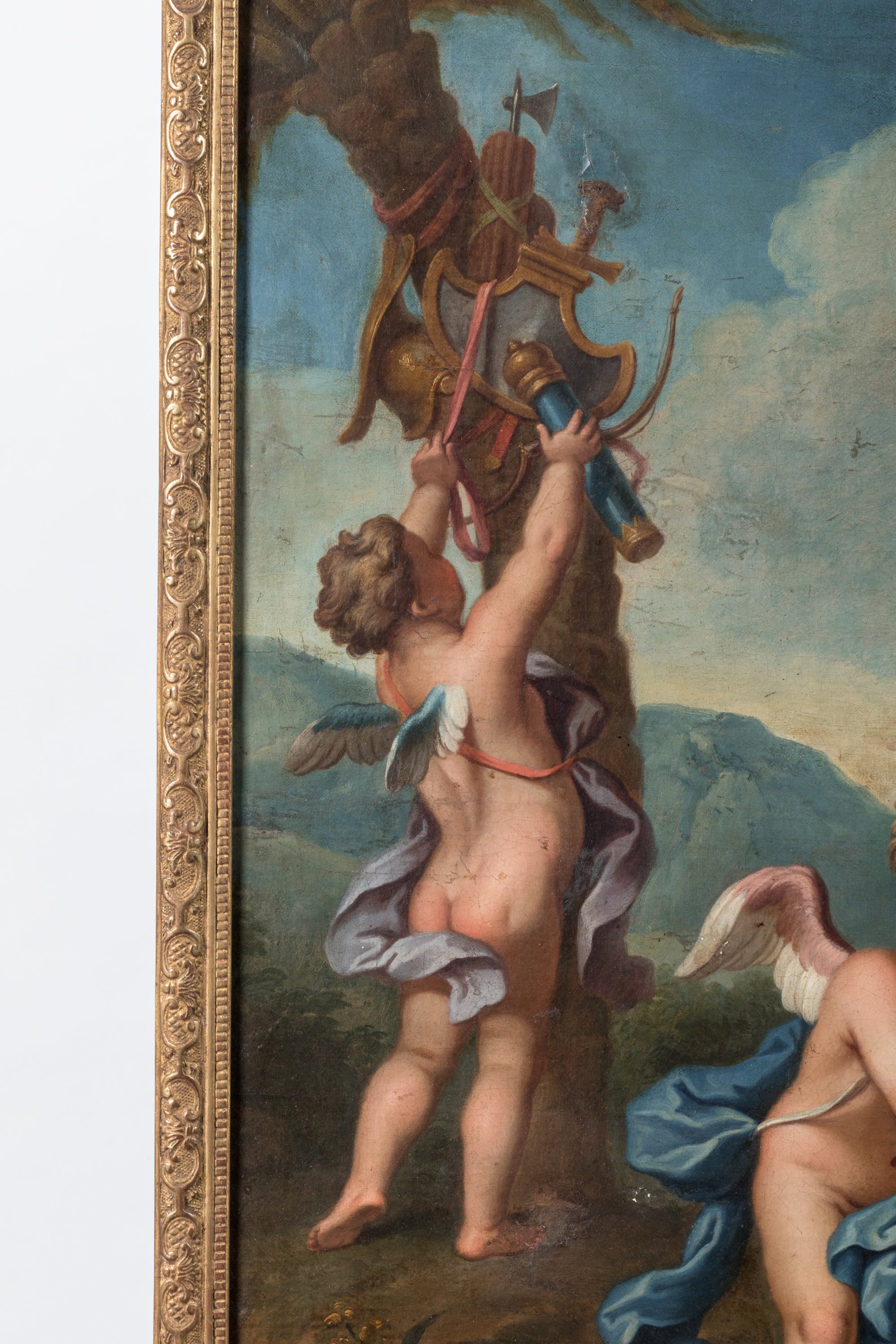 French School, 18th C. A painting of gods Minerva and Mars. In gilded wood and stucco frames.
