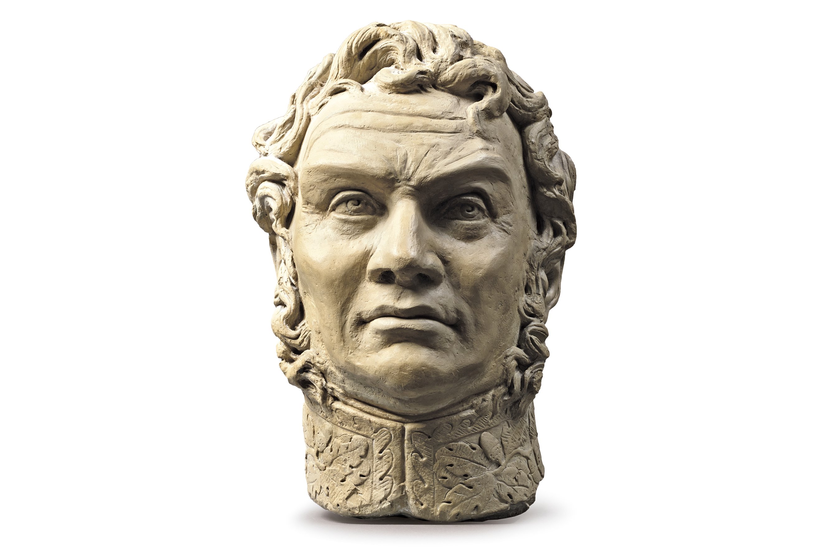 French School ca. 1900. An unfired clay sculpture of the head of Pierre Cambronne, General of the First French Empire.