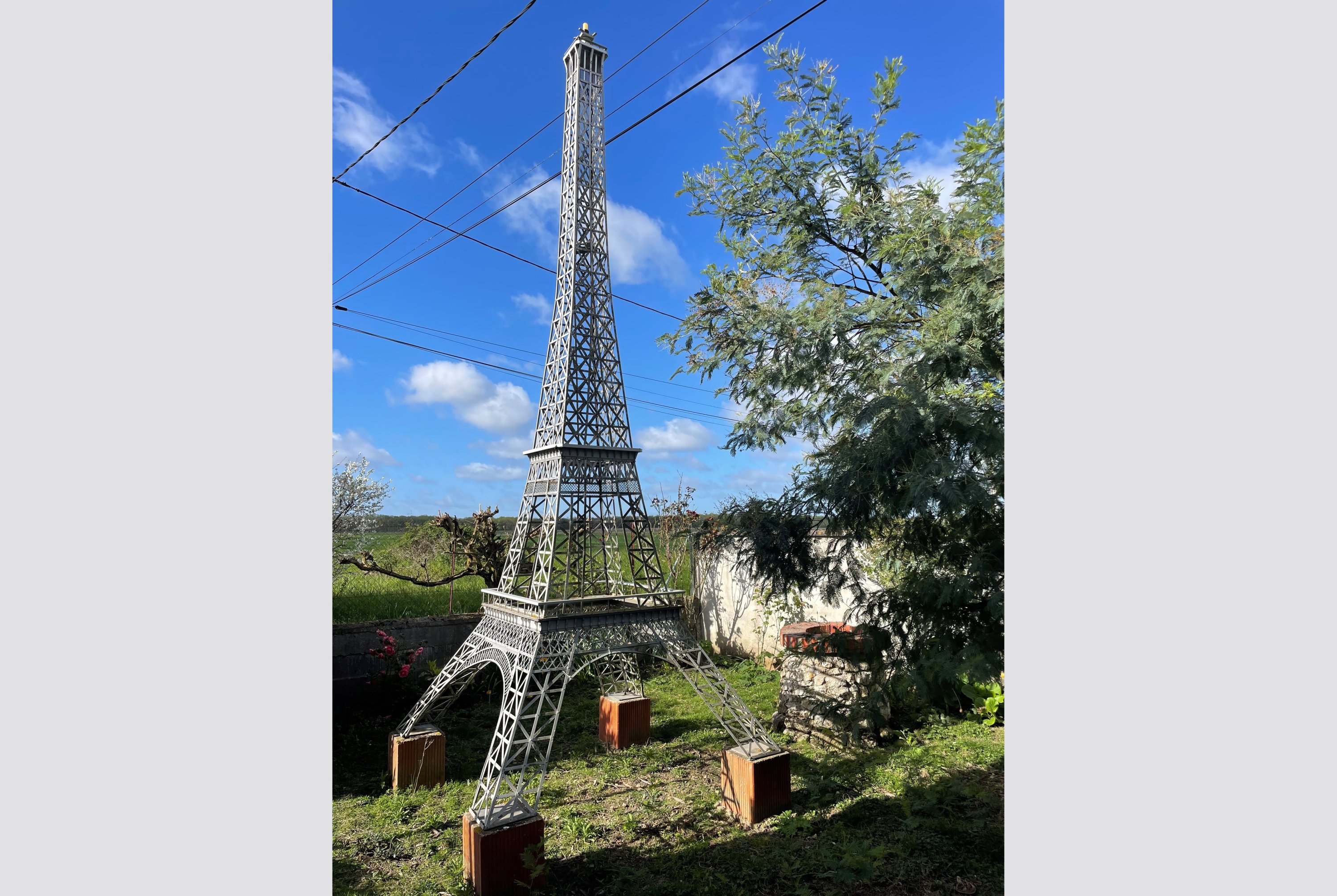 Contemporary. A 5-meter tall aluminium replica of the Eiffel Tower.