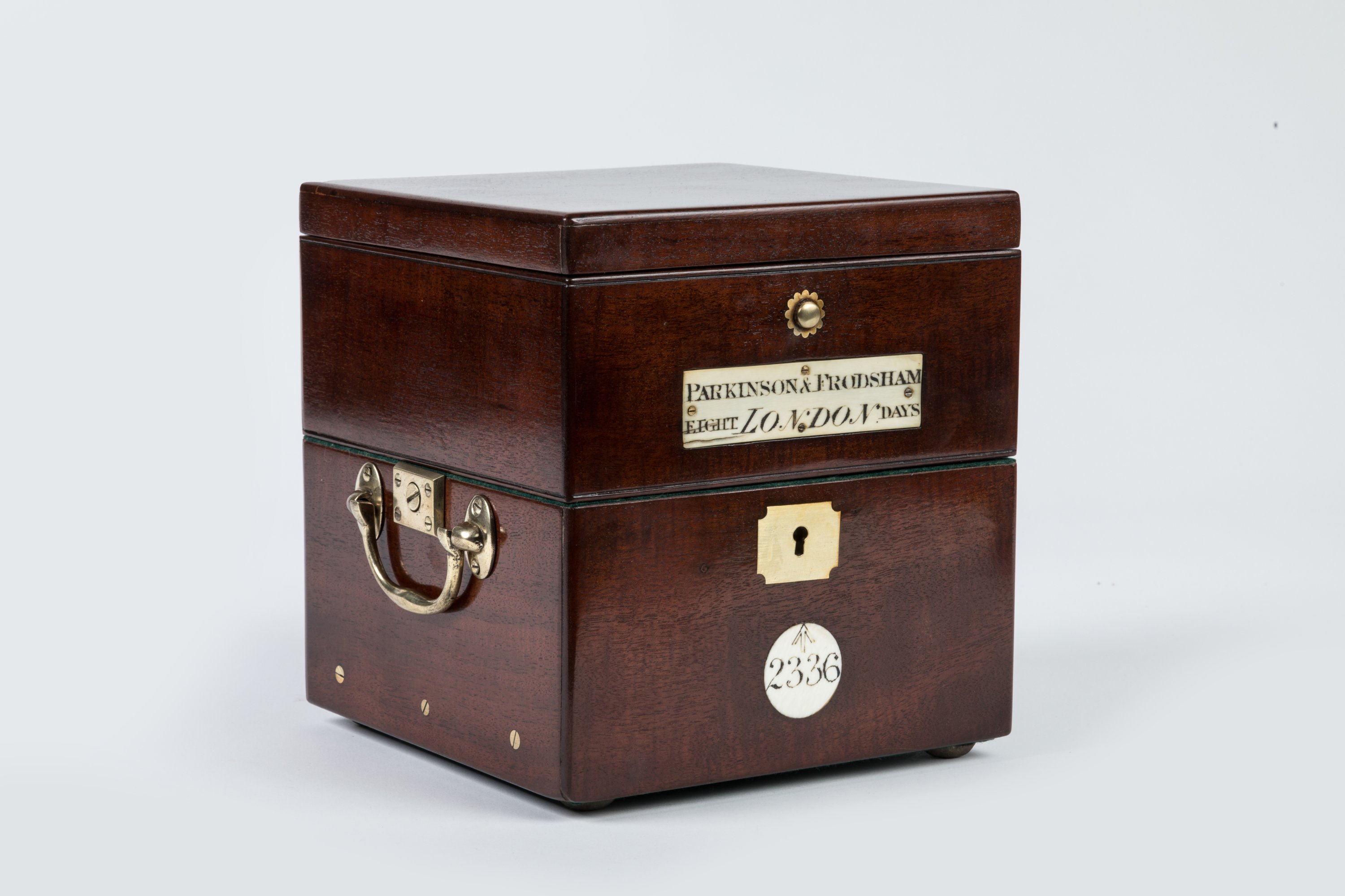 La maison Parkinson & Frodsham est fondée en 1801 par William James Frodsham (1778-1850) et William Parkinson (?-1842). Elle se spécialise dans l’édition d’instruments scientifiques et de marine. Son activité est exercée à plusieurs adresses entre 1801 et 1947. Notre chronomètre porte l’adresse du 4 Change Alley, que l’entreprise occupe de sa fondation jusqu’en 1890.