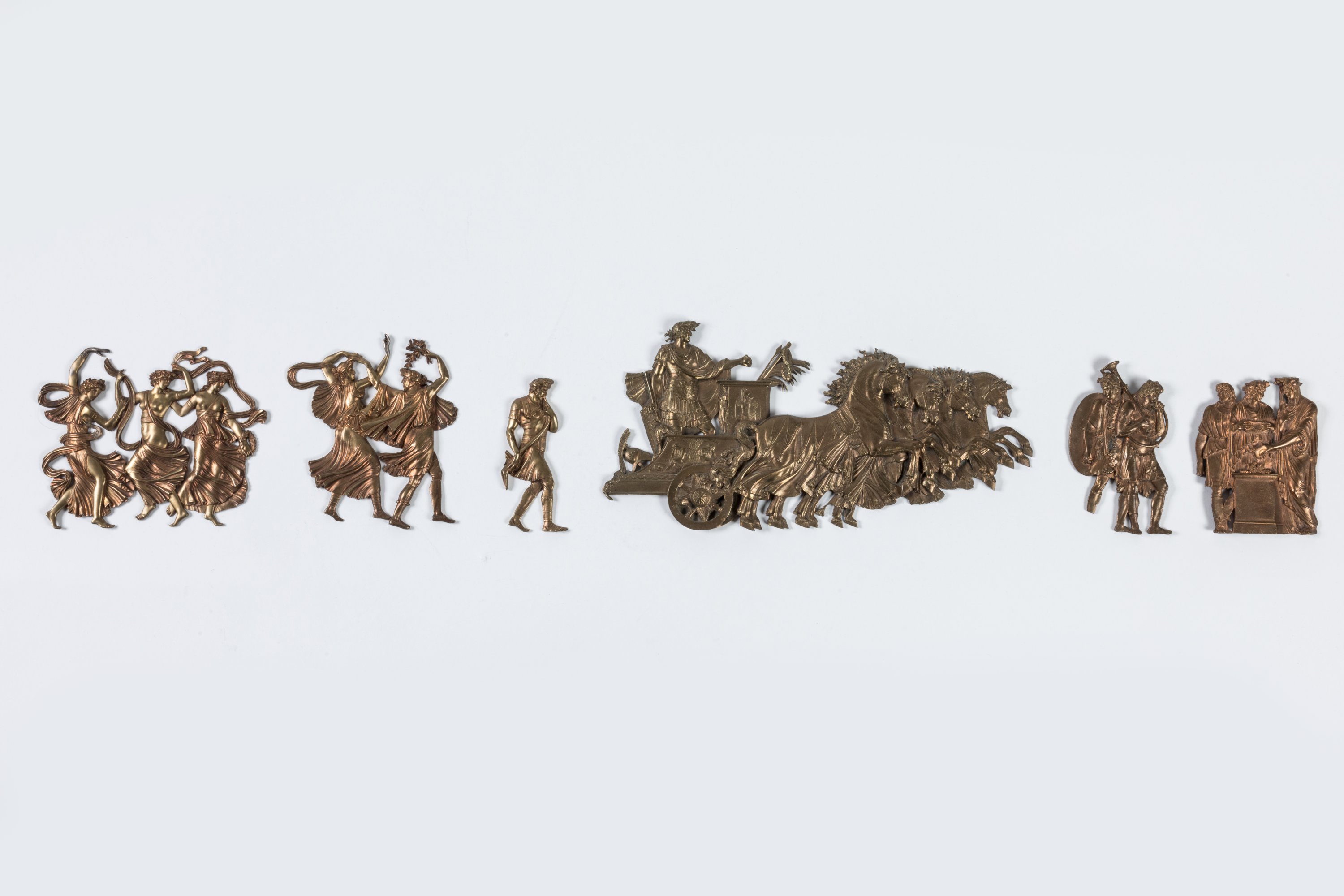 Pierre-Philippe Thomire, ca. 1806. A set of 6 bronze bas reliefs depicting Trajan's triumph. Model used for bronze mounts for console tables furnishing the Fontainebleau apartments of French Empress Joséphine or Anatole Demidoff's fireplace.
