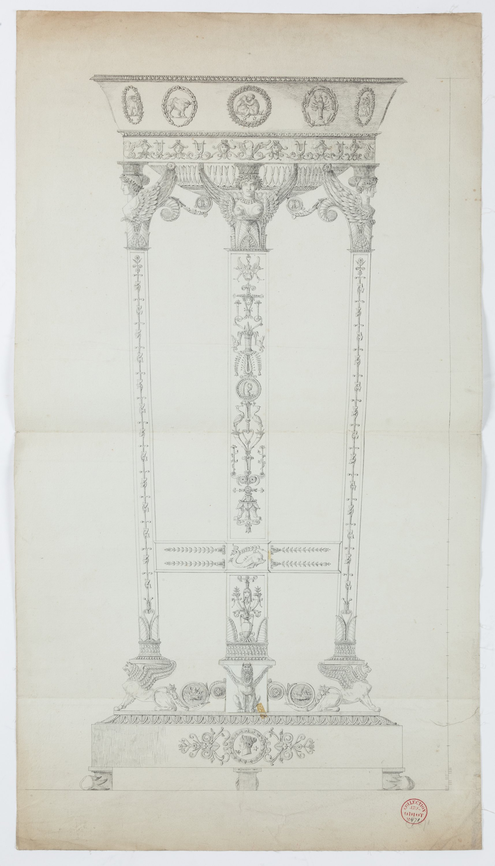 Attributed to Antoine-Léonard Dupasquier for Atelier Odiot. A 1806 ink drawing of a tripod and basin intended for French Empress Joséphine. From the Maison Odiot collections.