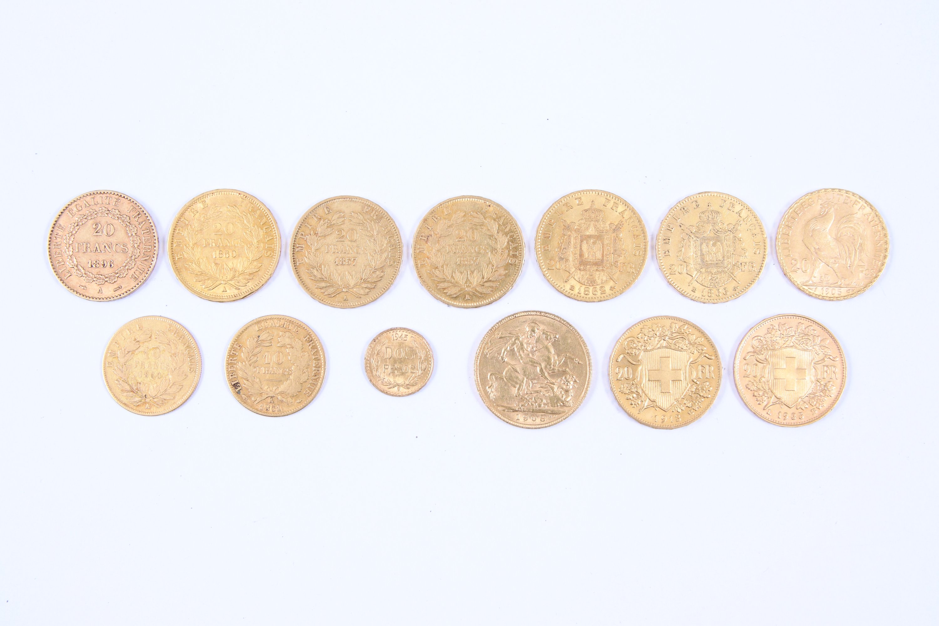 France, Royaume-Uni, Suisse et Mexique: 13 monnaies or