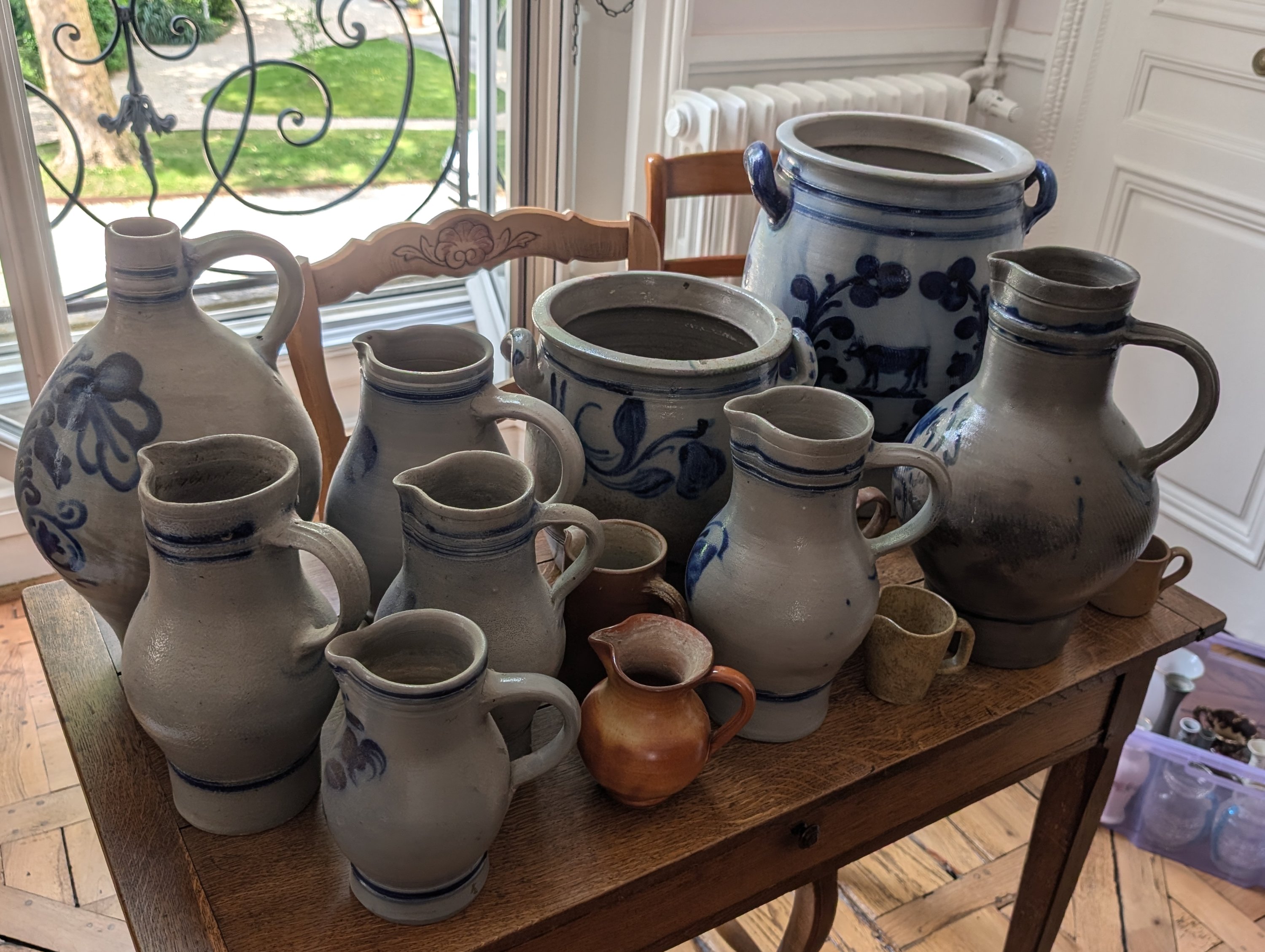 Contenu des greniers de la maison mère de la congrégation des soeurs du Bon Secours: vases d'autel, crucifix, lampes à pétrole, cadres, machine à tuyauter les coiffes, etc.