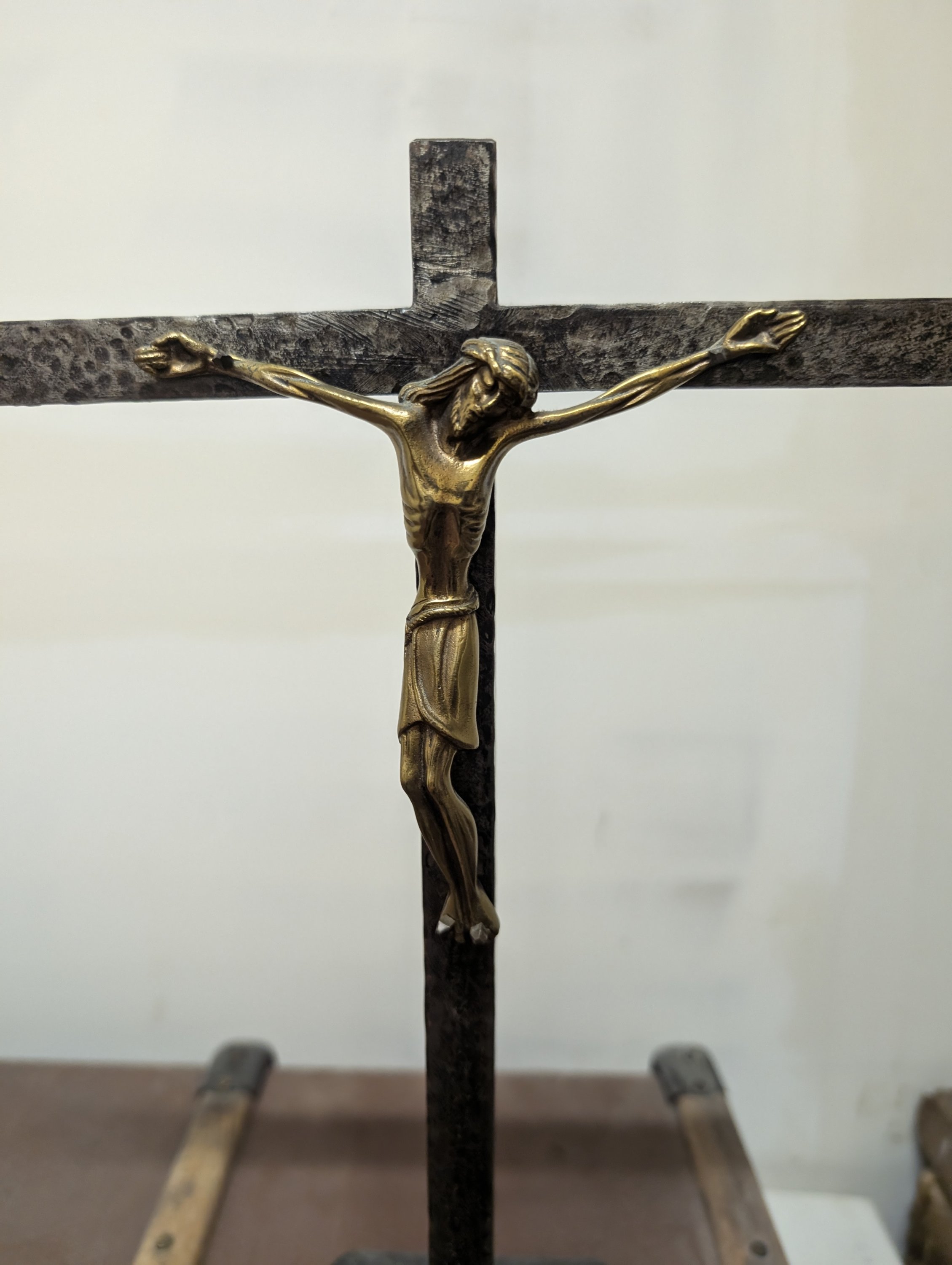 Contenu des greniers de la maison mère de la congrégation des soeurs du Bon Secours: vases d'autel, crucifix, lampes à pétrole, cadres, machine à tuyauter les coiffes, etc.