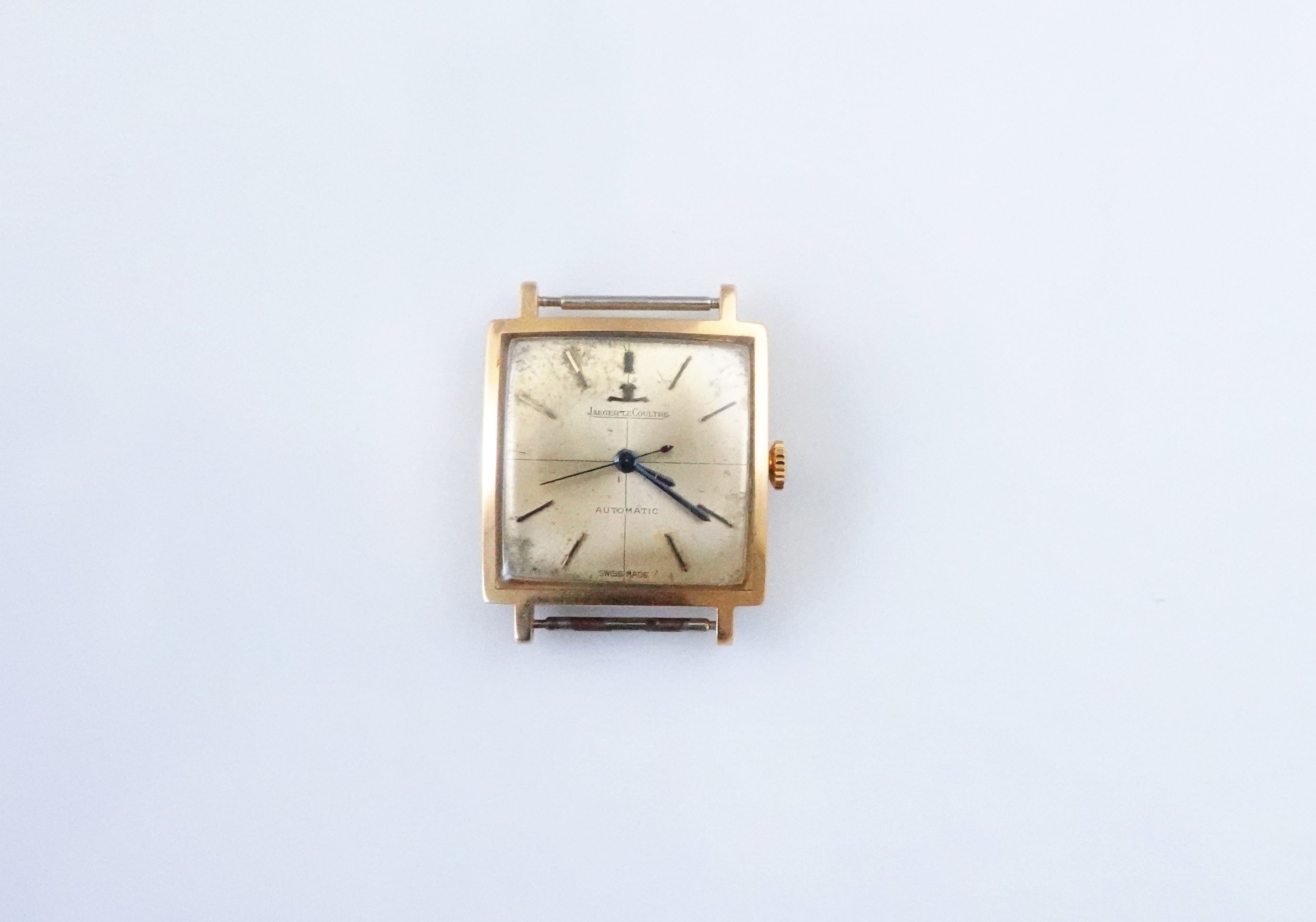 en or jaune 750 millièmes de forme quadrangulaire. Le cadran en argent doré avec batons, signé et portant l'inscription "automatic". Remontoir à trois heures. Numéroté "163528".
