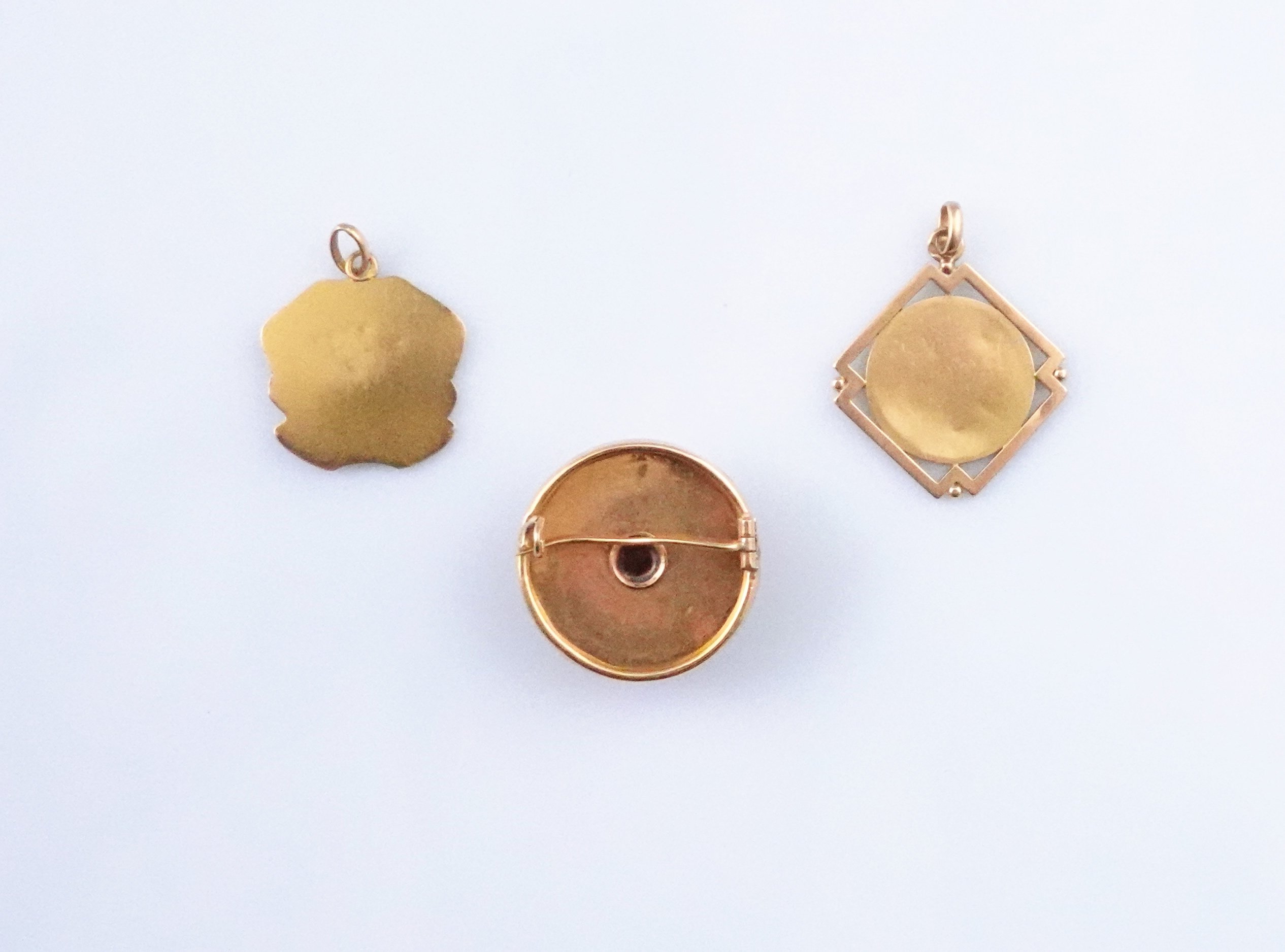 - Deux médailles en or jaune 750 millièmes à décor d'une tête de femme casquée. Poids: 4,9 g.