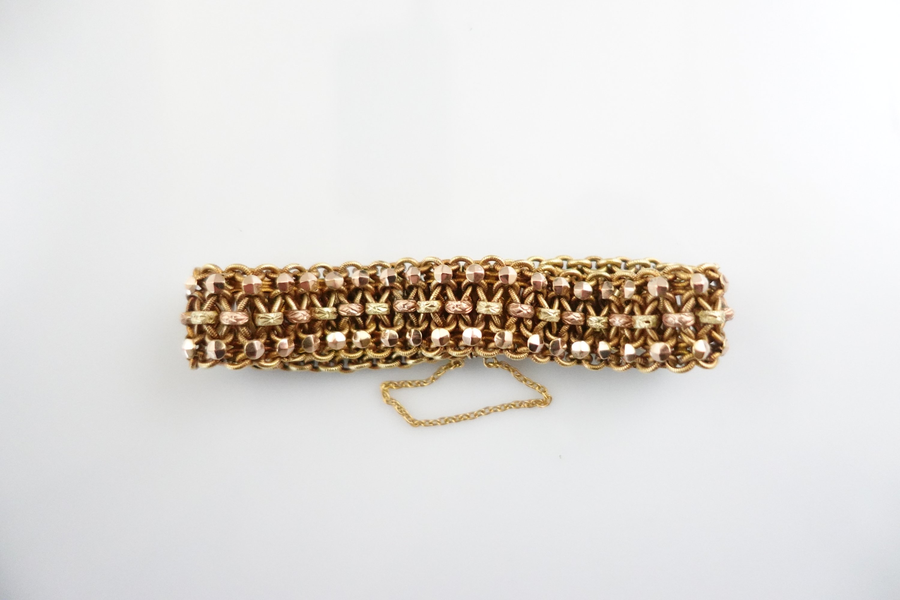 en or 750 millièmes plusieurs tons à mailles articulées. Chaînette de sécurité.