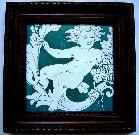 CREIL-MONTEREAU. Enfant et raisins, marque MONTEREAU B & Cie CREIL, 200 x 200 mm.
