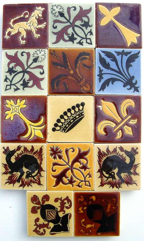 GIEN. 14 carreaux réfractaires émaillés et vernissés, 60 x 60 mm.