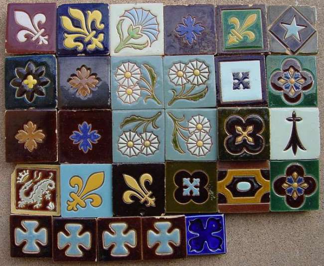 LOEBNITZ, PICQUEFEU, ROY. 30 carreaux réfractaires, modèles divers, XIXème, 60 x 60 mm.