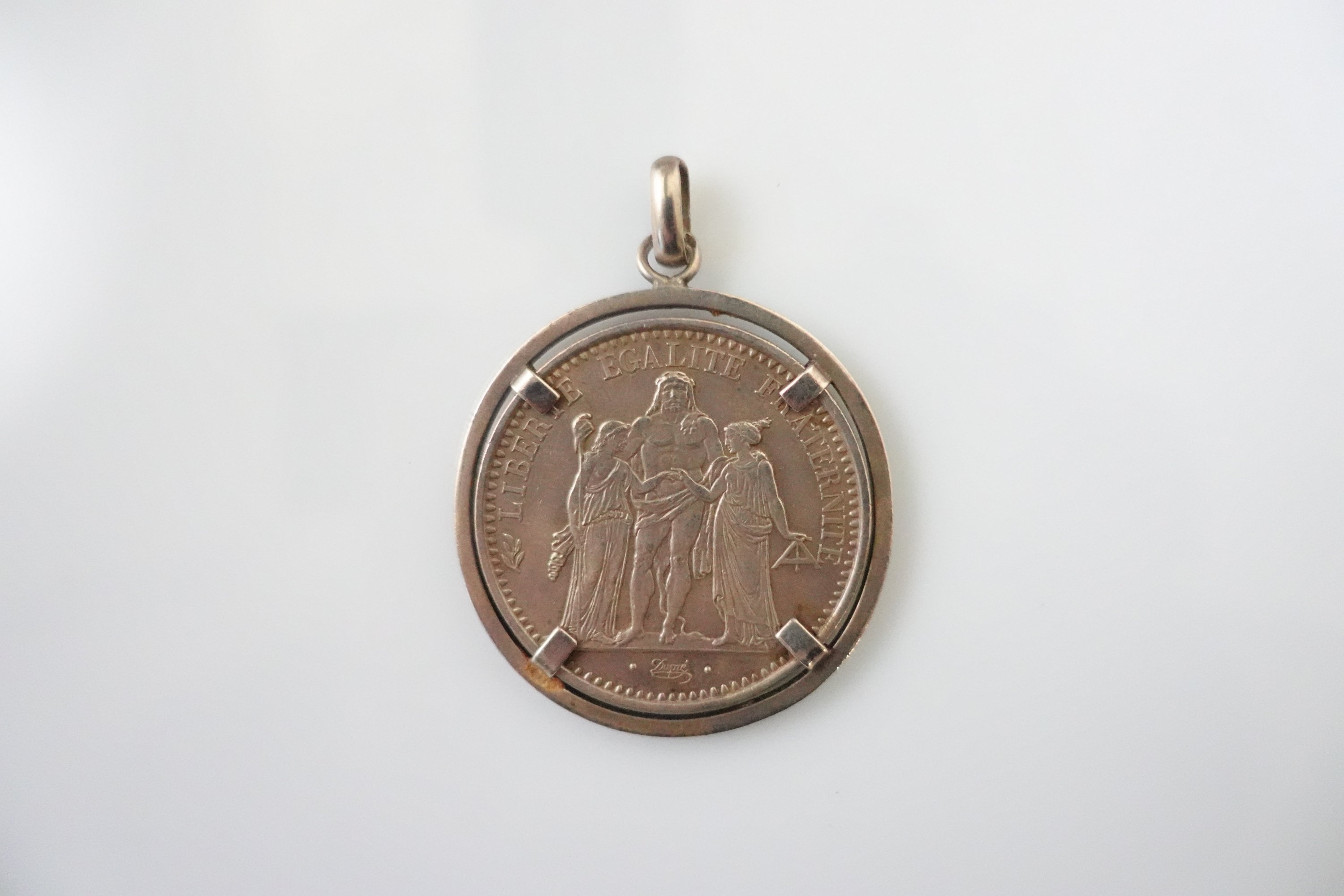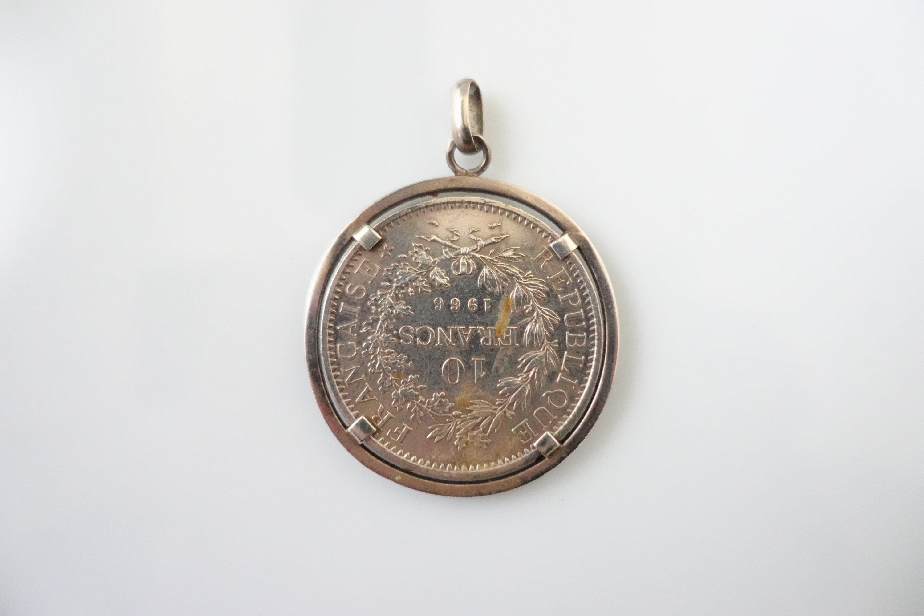 Joint: France. 1 pièce de 10 francs "Hercule", 1966, montée en pendentif dans une monture en argent.