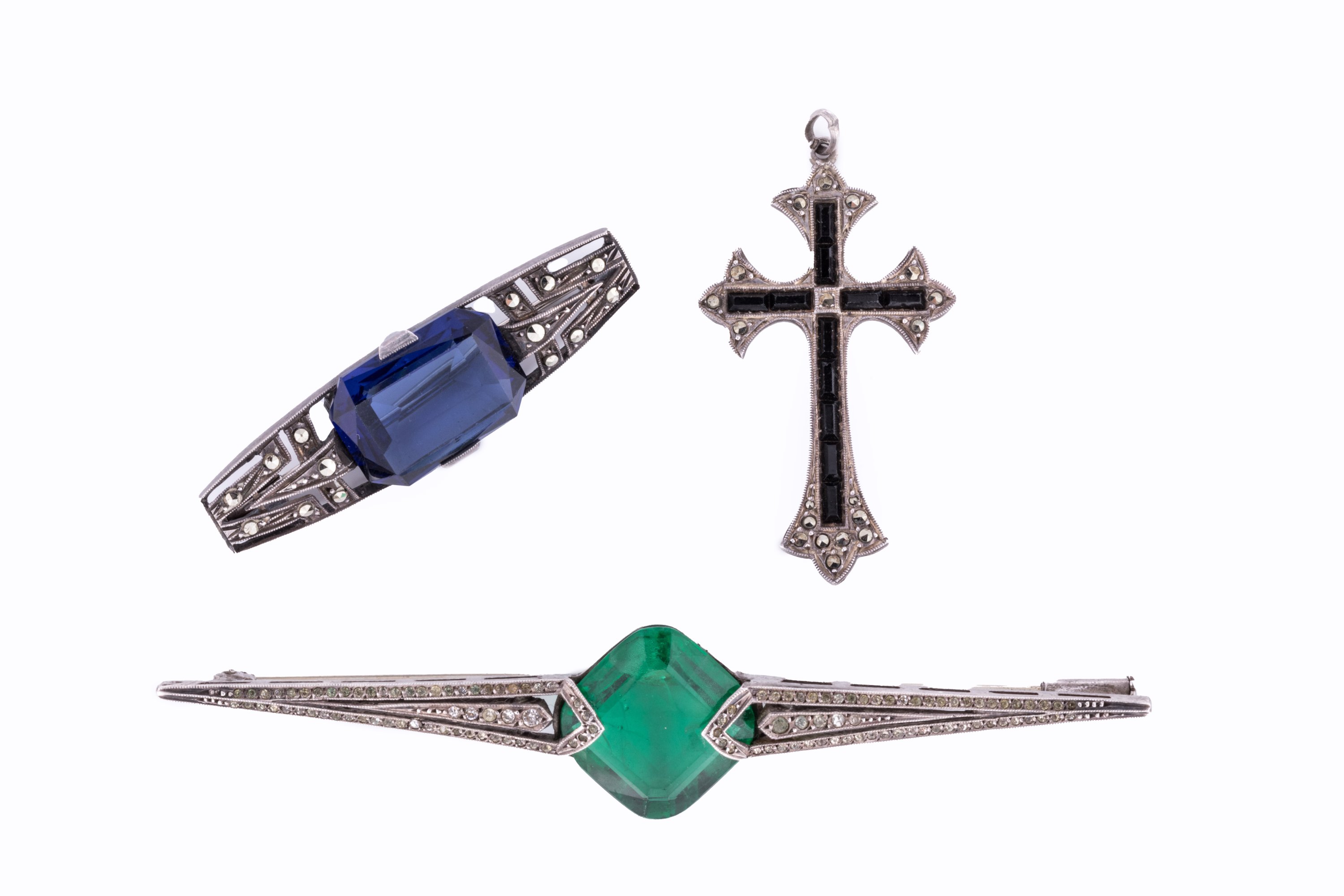 en argent, ornées de pierres du Rhin et verre vert, verre bleu ou onyx.