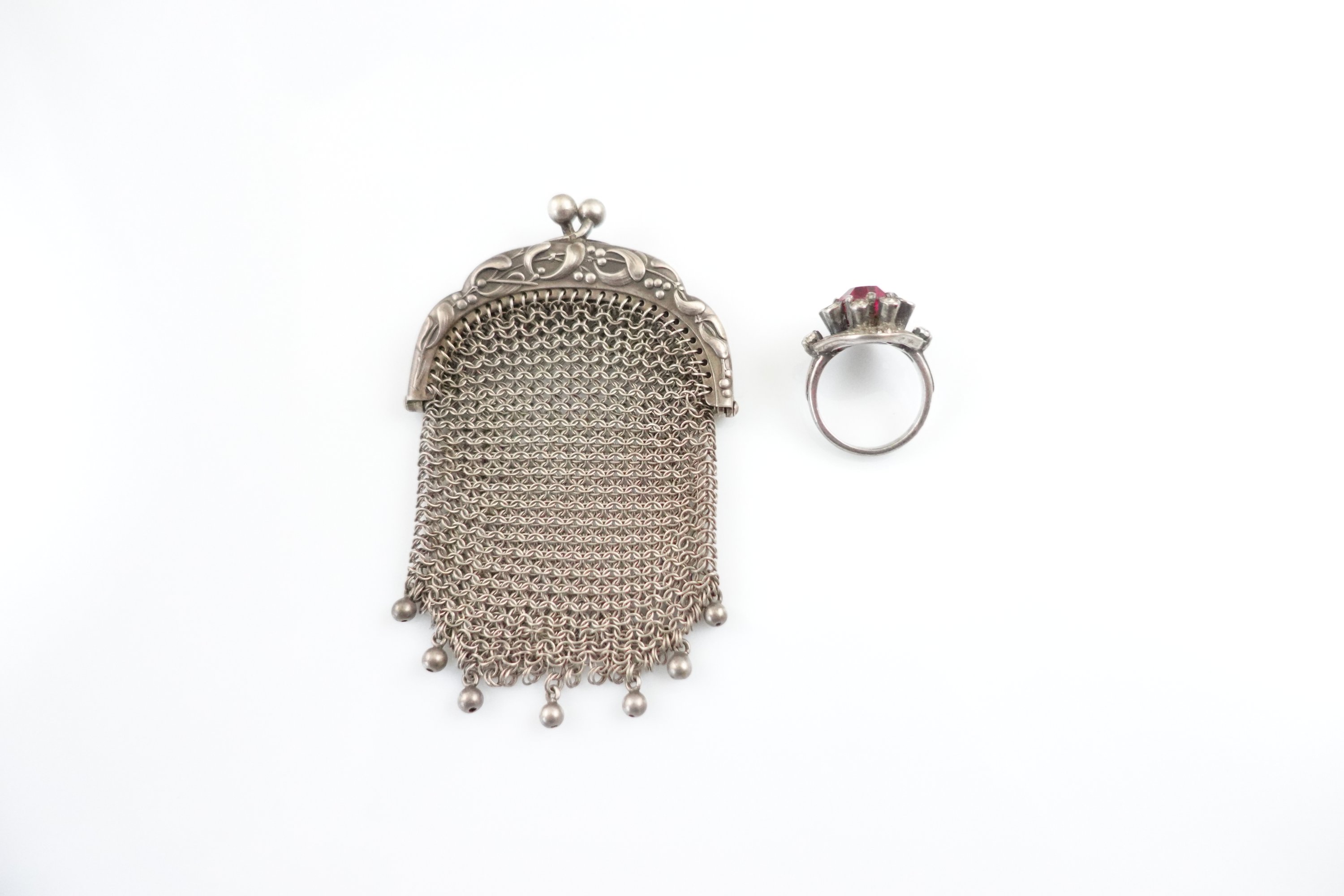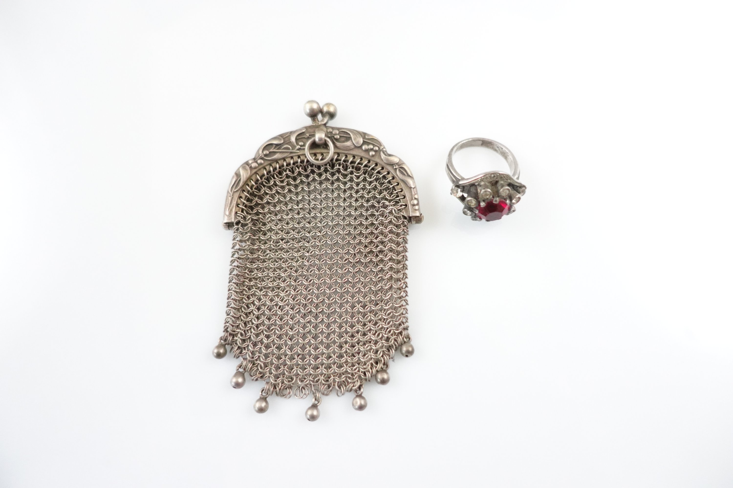 - La bague sertie d'un verre rouge et entourage de zircon. TDD 51.
